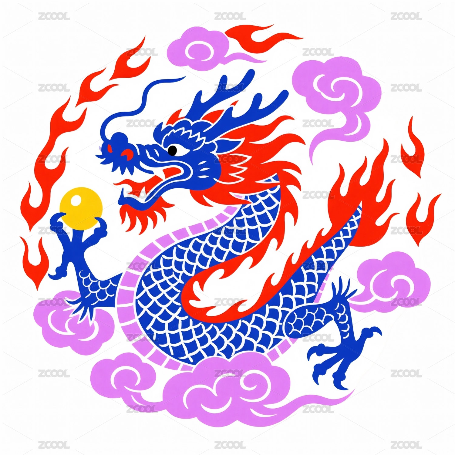 蓝色祥龙环绕红色火焰