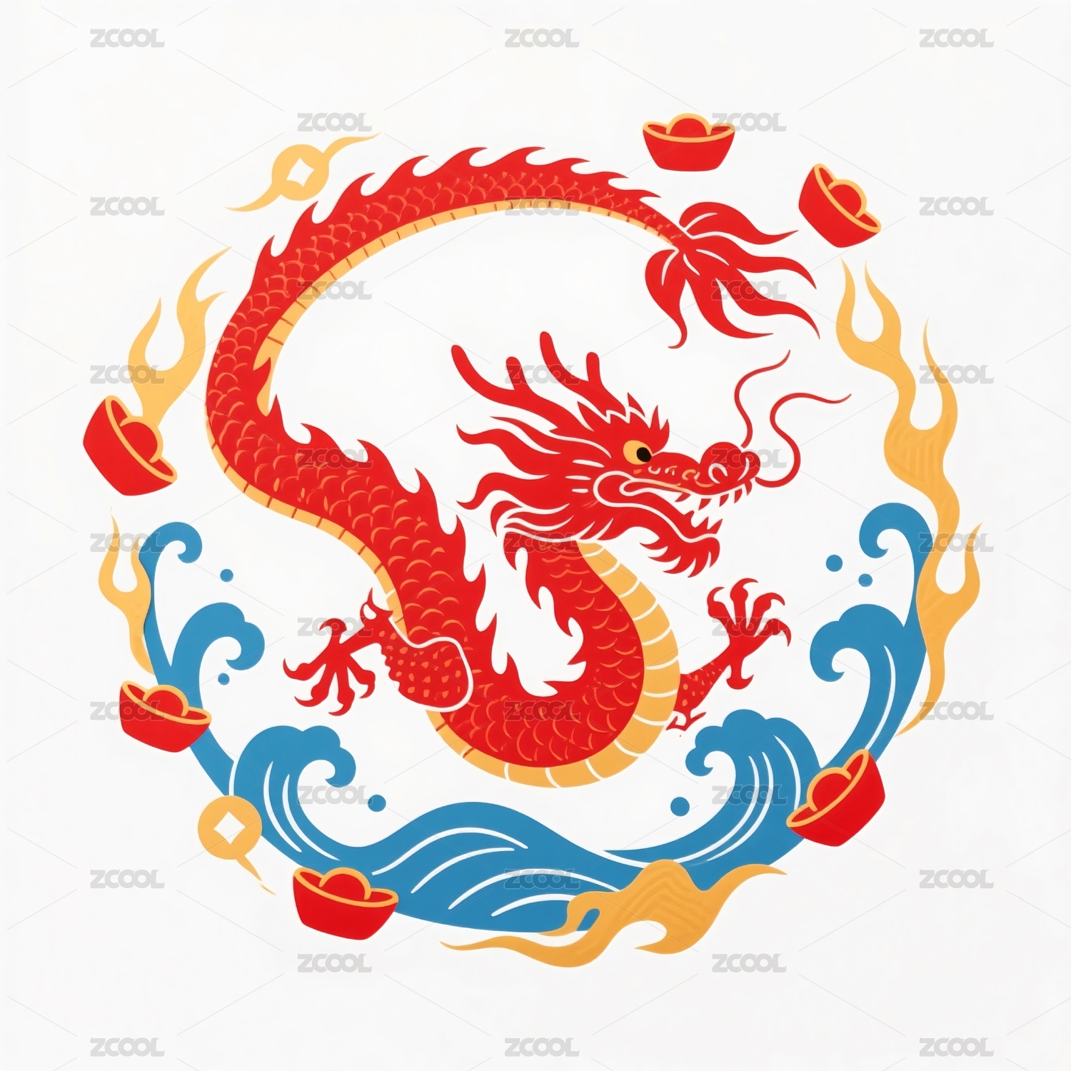 红色祥龙环绕金元宝