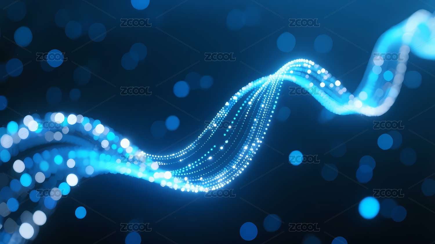 蓝色光点波浪线条展现科技动态美感