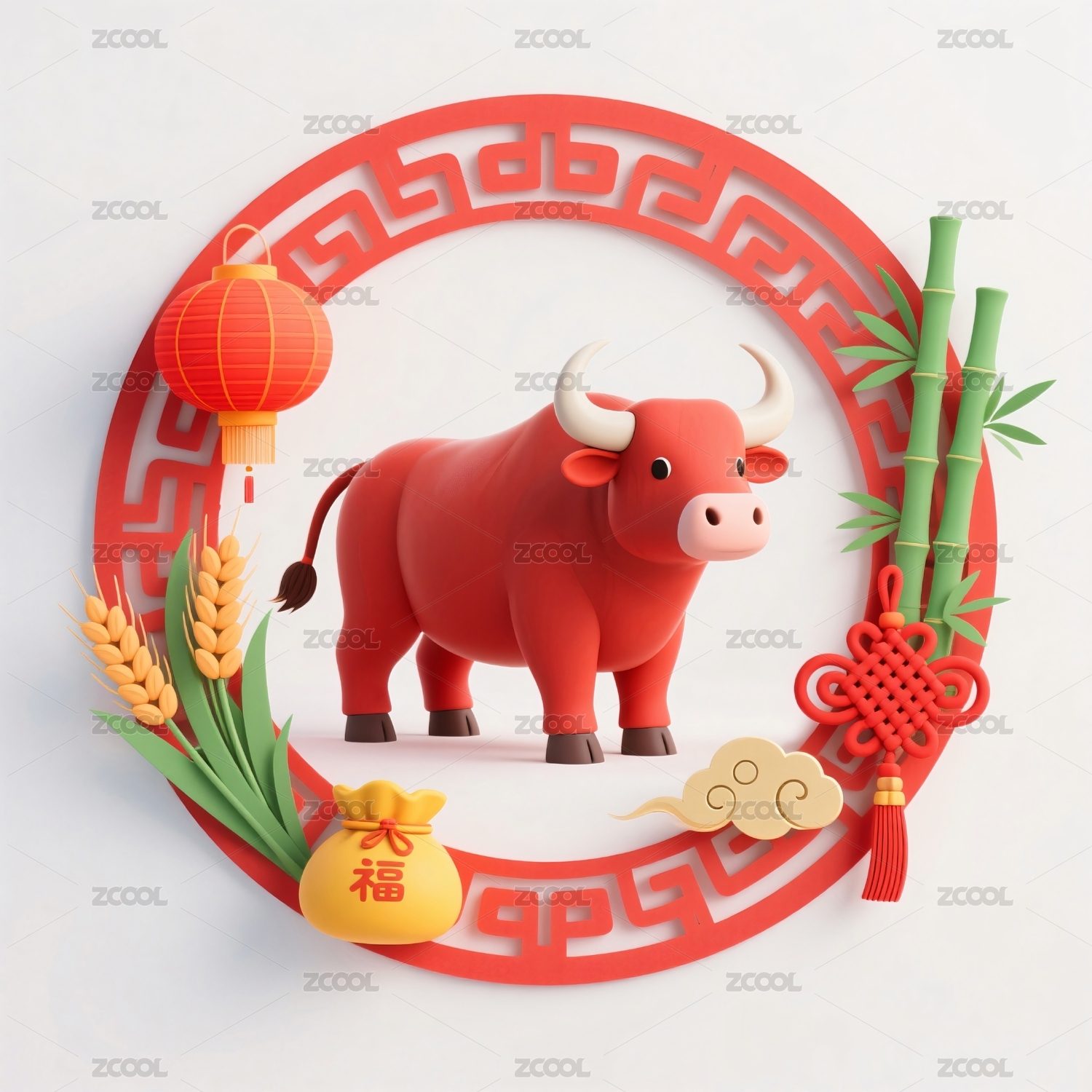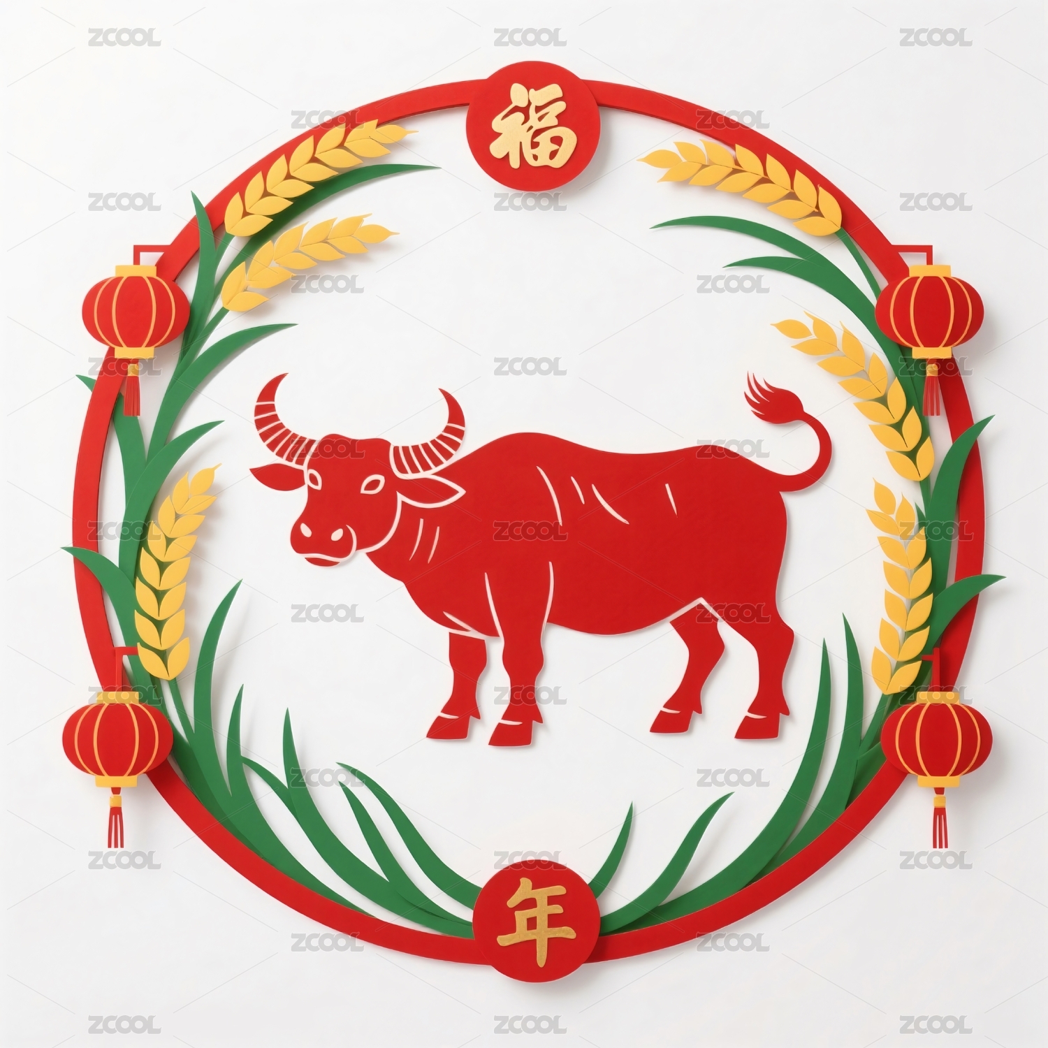 牛年剪纸中国传统剪纸牛红色窗花门贴