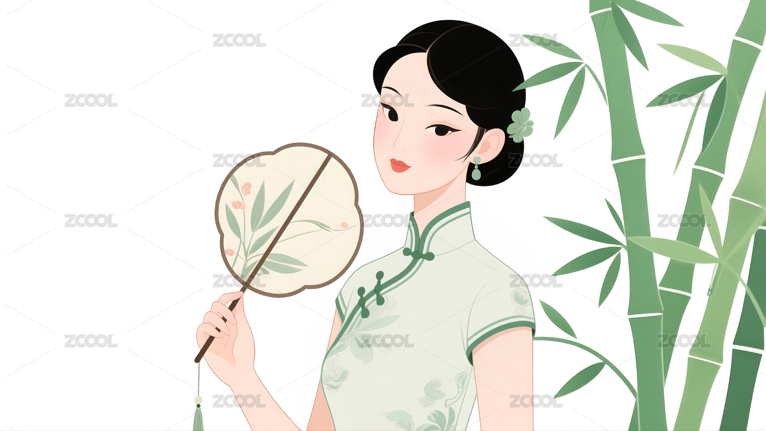 旗袍美女和竹子插画