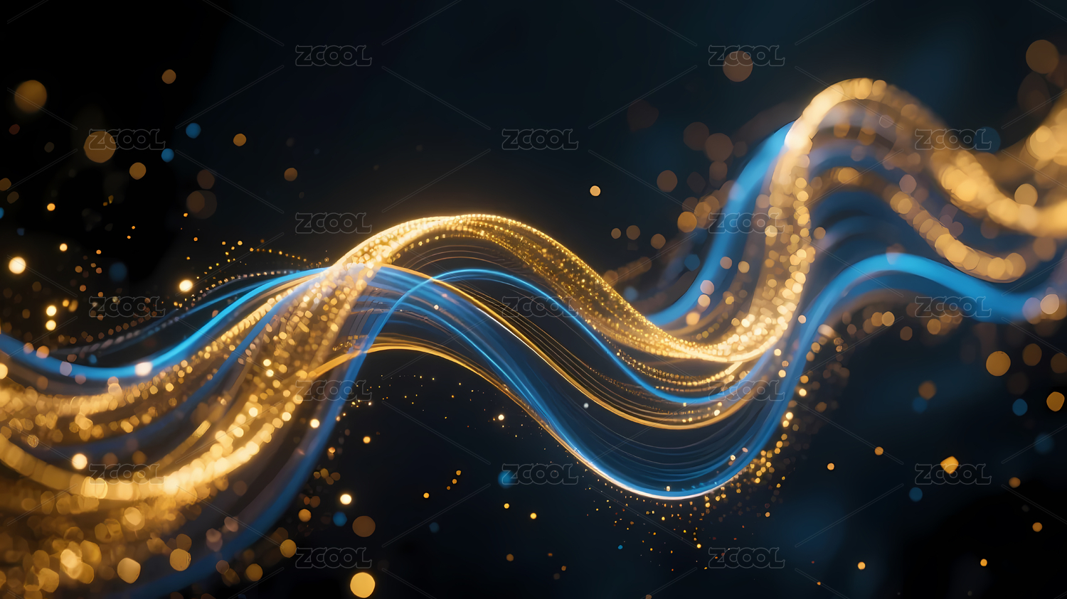 背景,波浪,光点,神秘,蓝色,光斑,深蓝色,金色,氛围,华丽