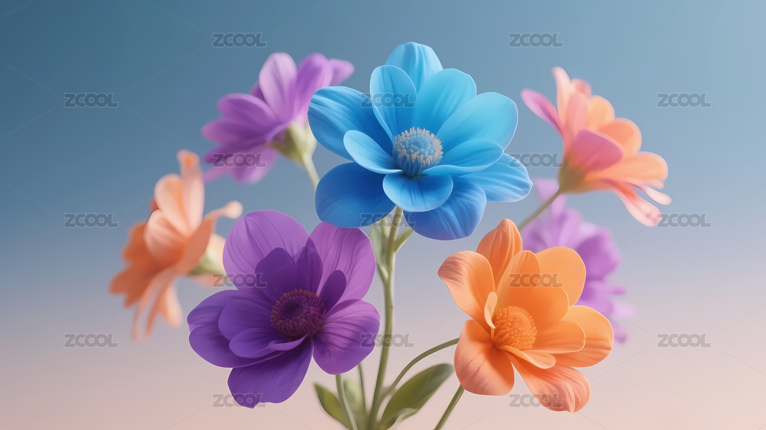 背景,渐变,橙色,蓝色,黄色,光泽,花朵,生动,鲜艳,透明