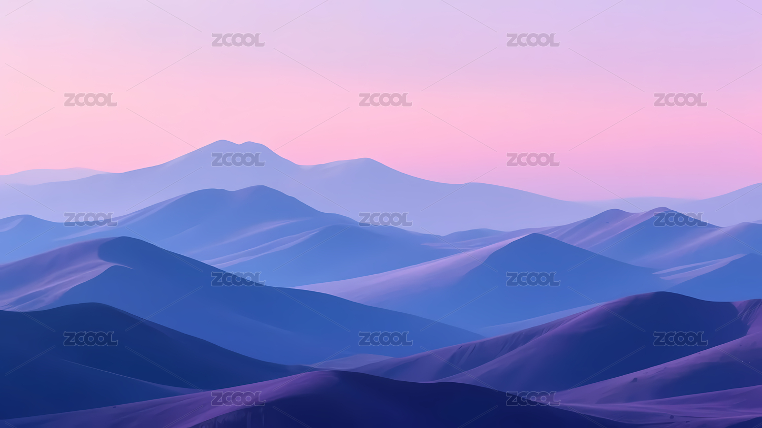 紫蓝山脉与粉紫天空