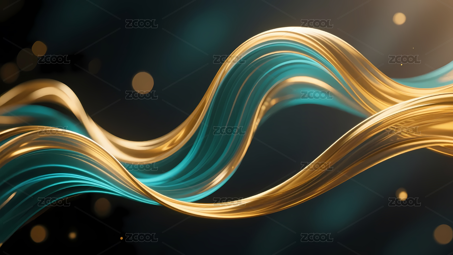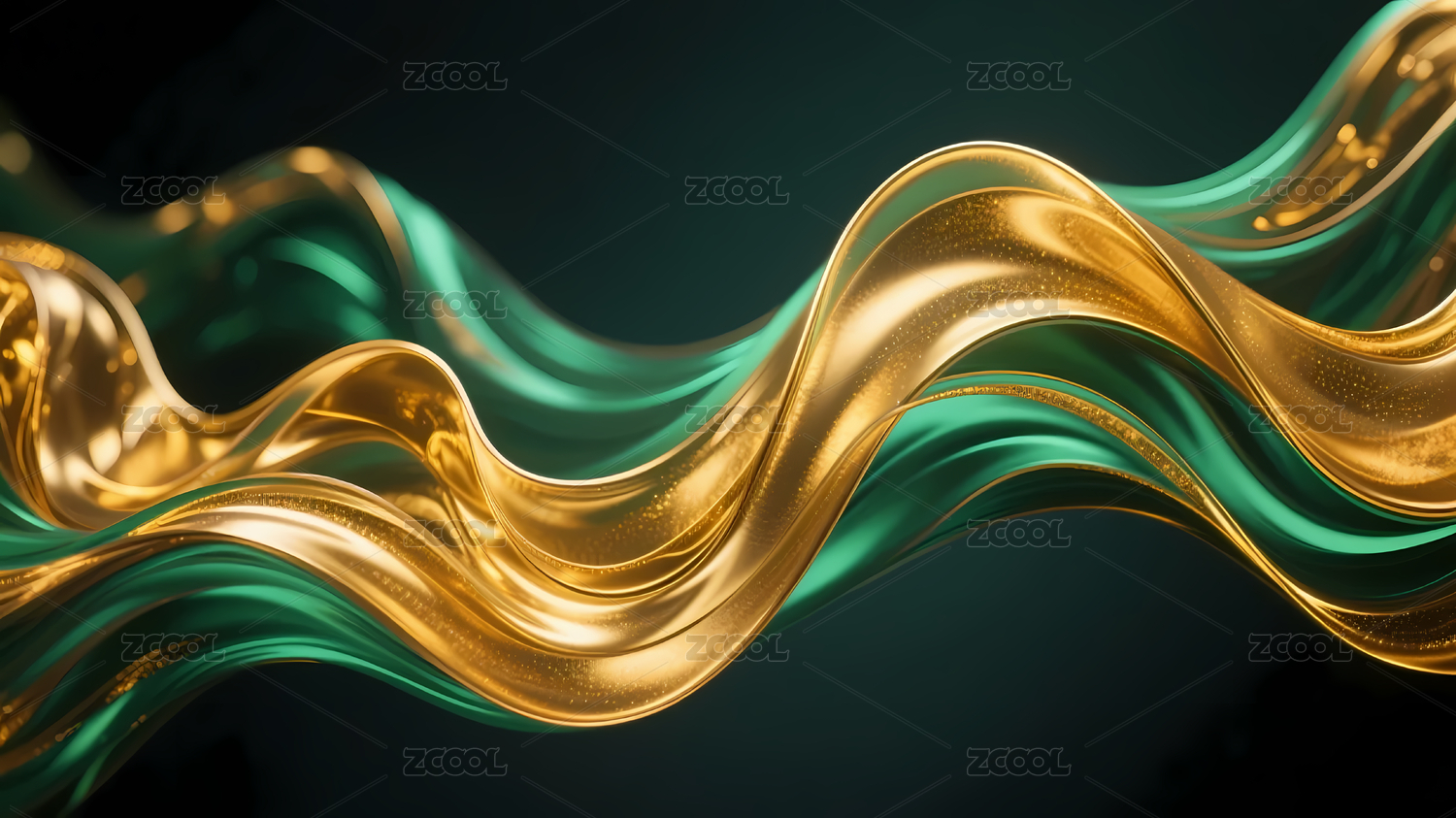 波浪,背景,流动,曲线,线条,绿色,深色,神秘,金色,华丽