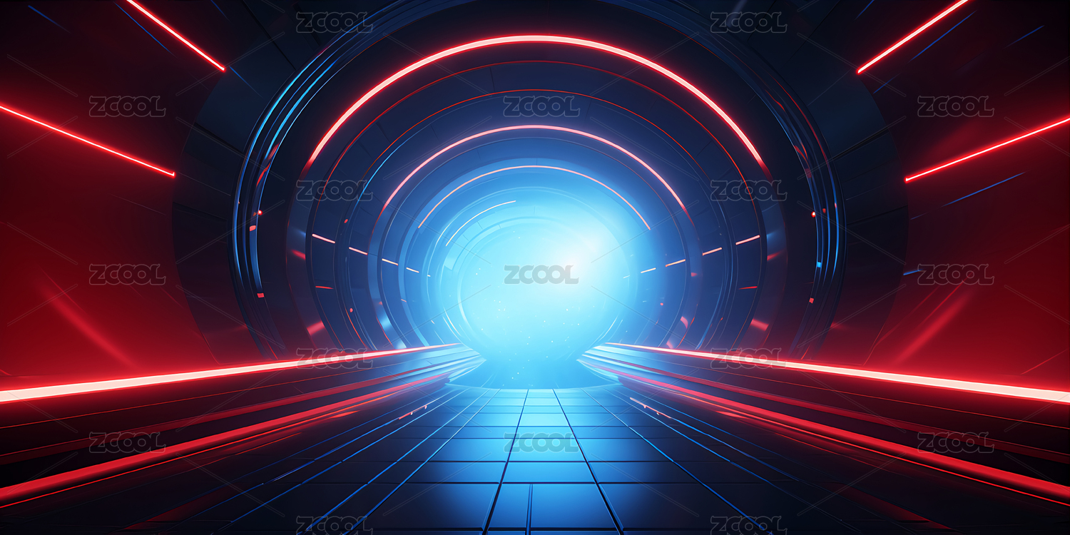 数码科技紫色霓虹灯抽象未来派隧道海报背景