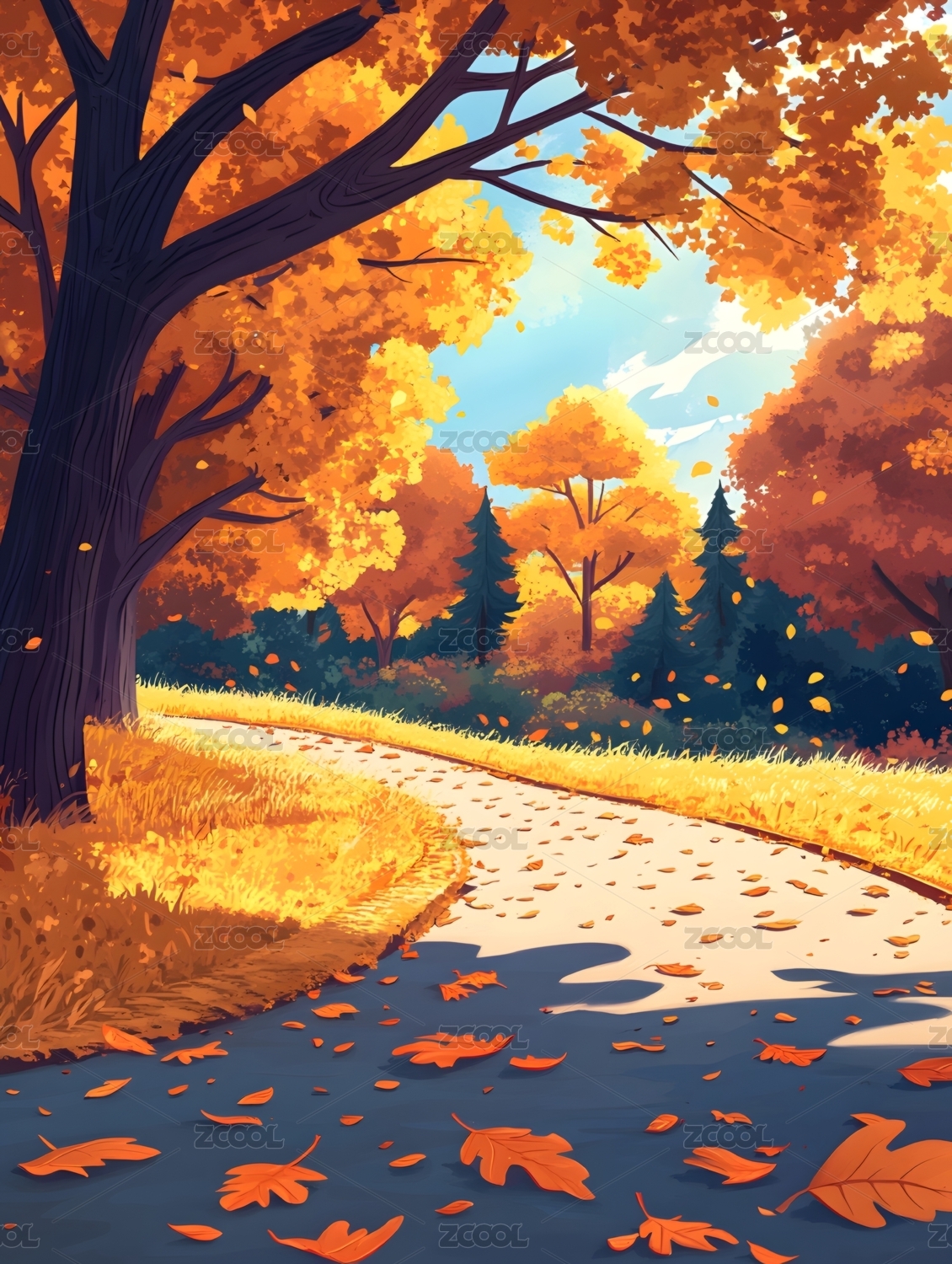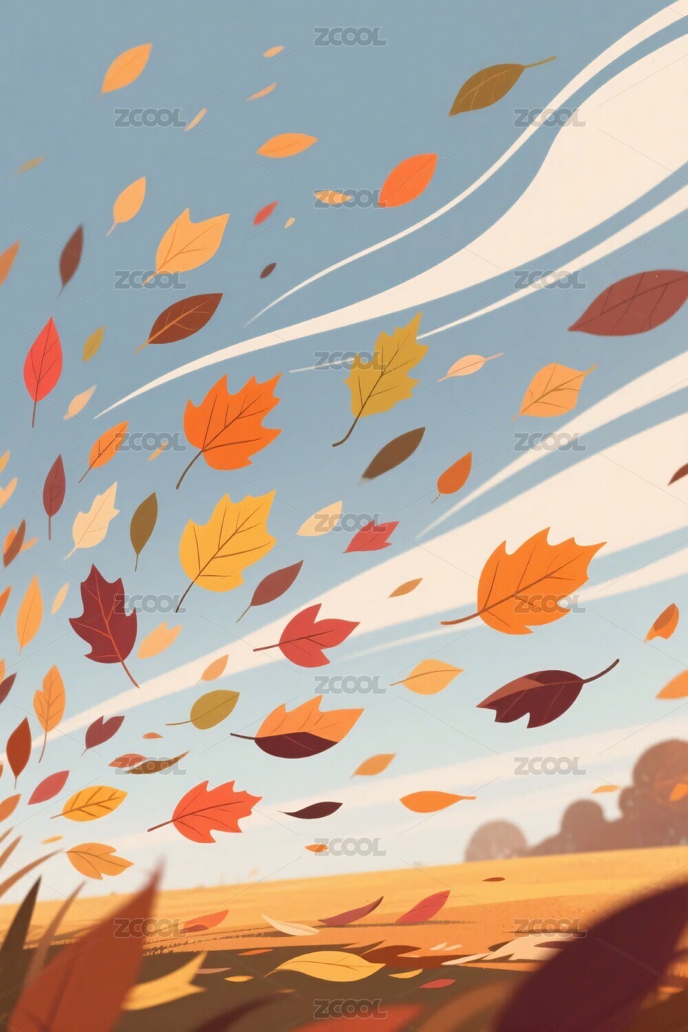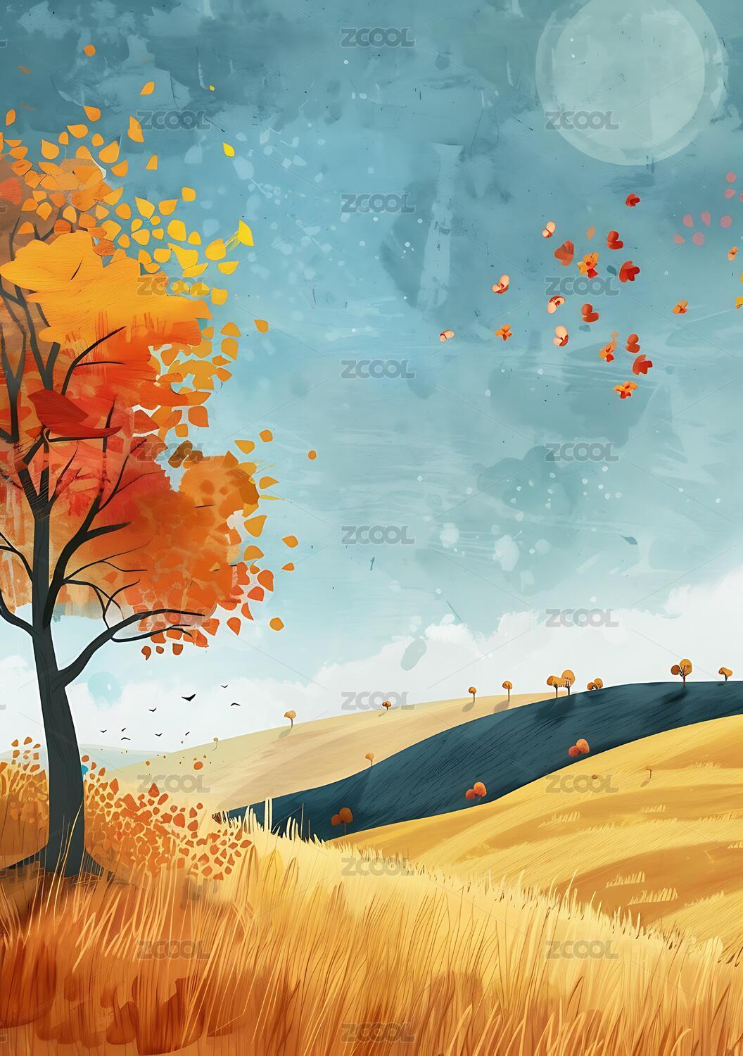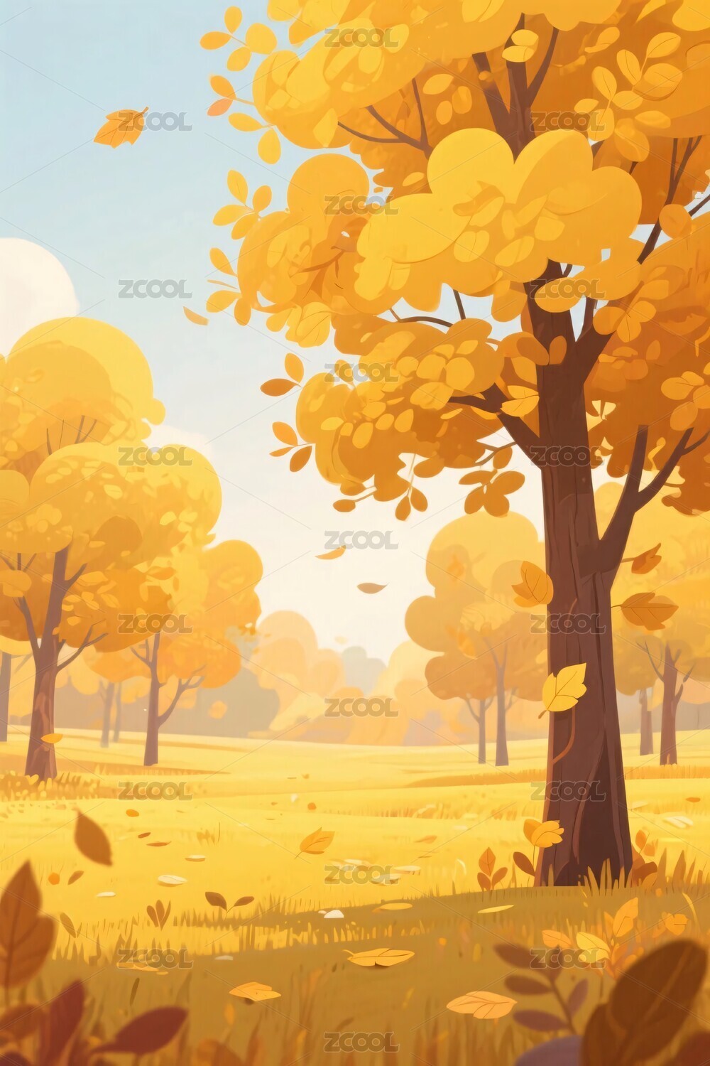 秋天扁平黄色调卡通插画海报壁纸治愈