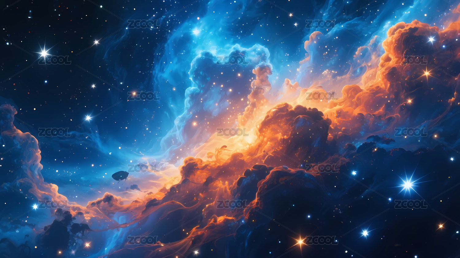 主体,蓝色,背景,渐变,星空,橙色,宇宙,星云,色彩,斑斓