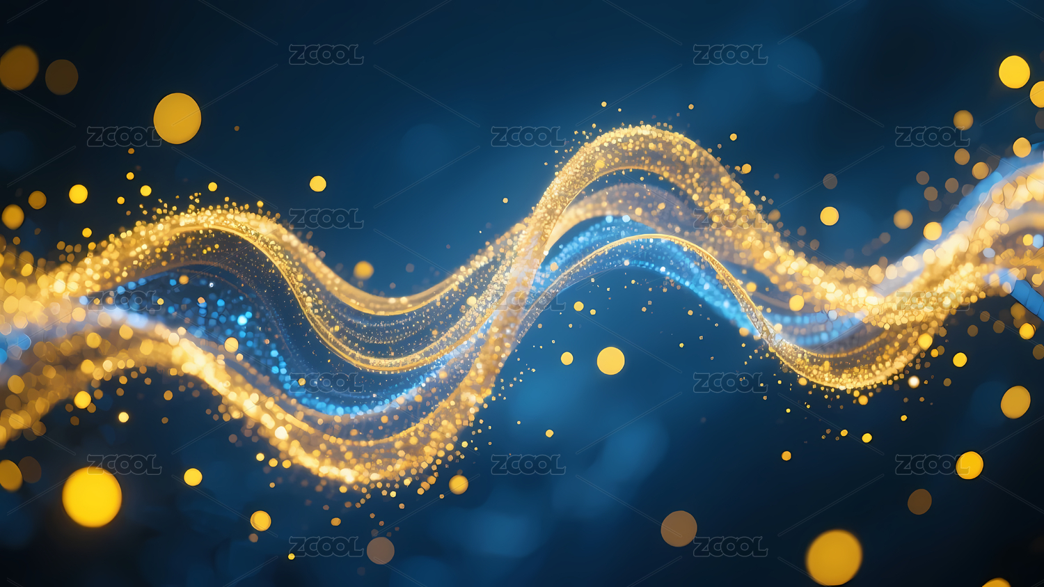 主体,蓝色,背景,粒子,波浪,金色,深蓝,黄色,效果,光点