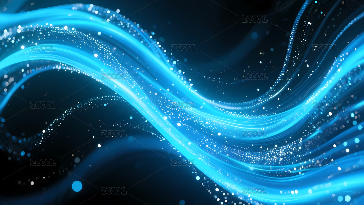线条,主体,蓝色,背景,深色,发光,粒子,波浪,神秘,梦幻