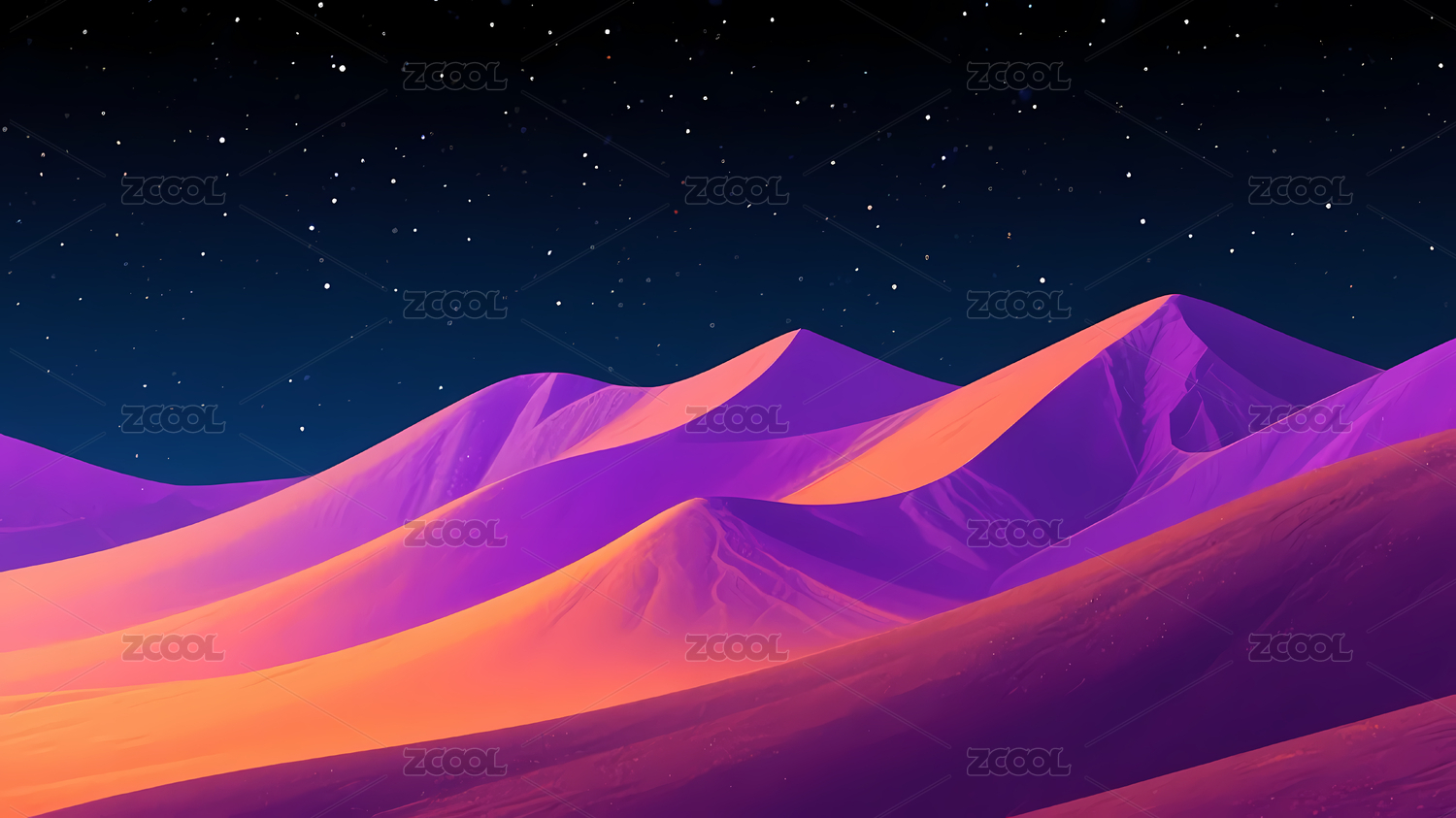 主体,紫色,背景,波浪,橙色,夜空,星星,鲜艳,景象,山丘