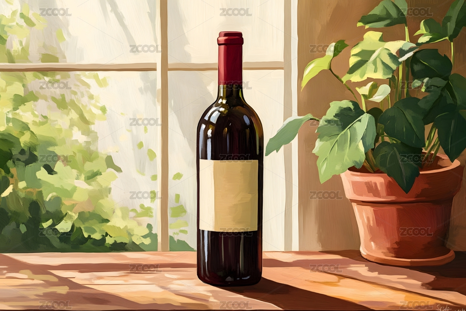 柔光下木桌上的酒瓶