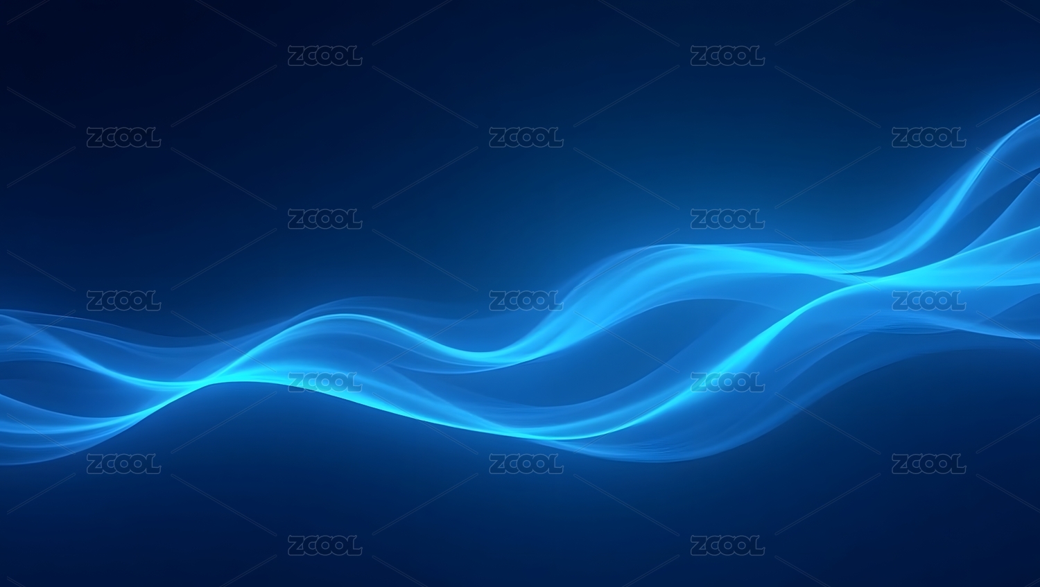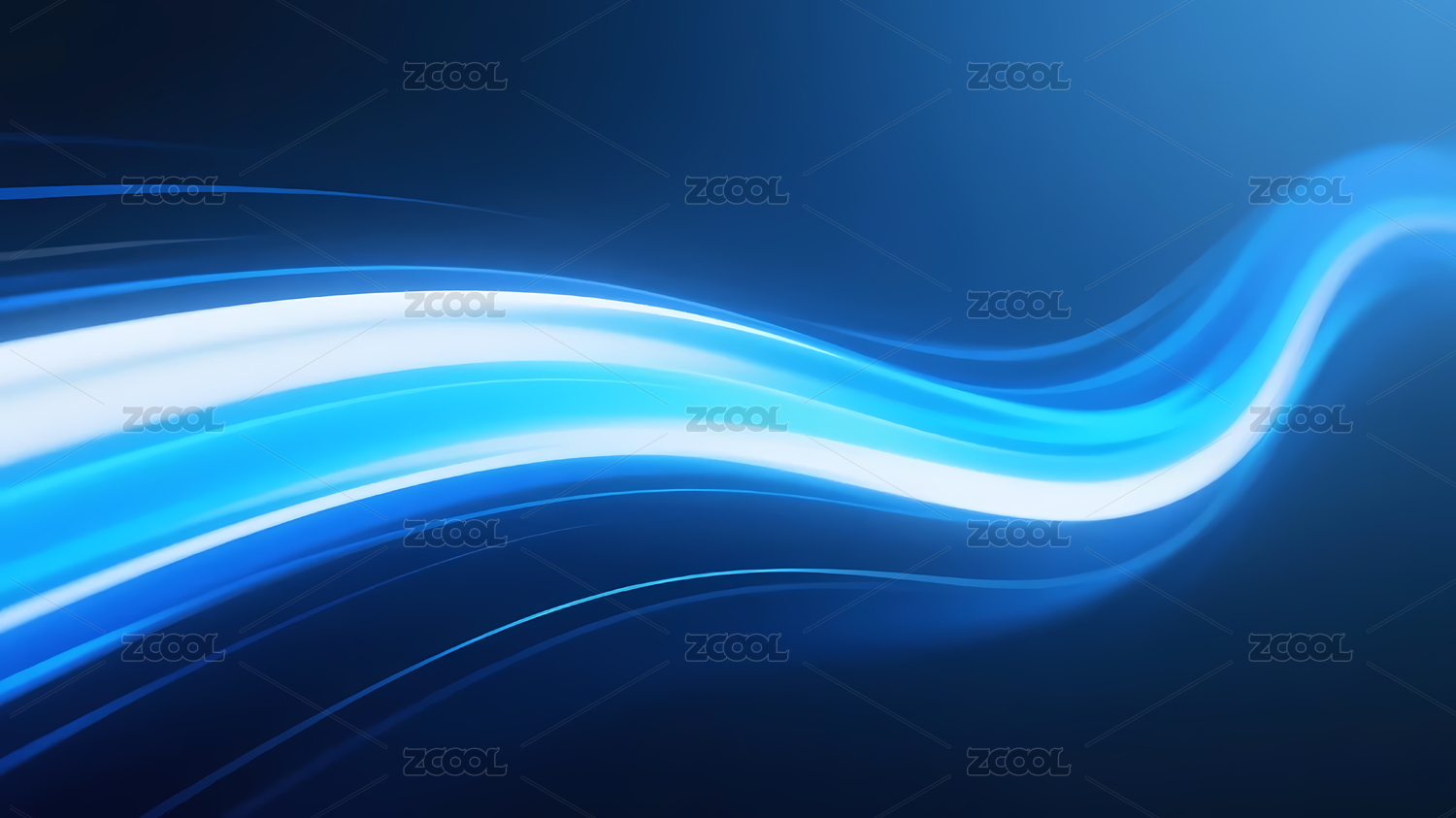 浅蓝色光带在渐变蓝色背景前呈现波浪造型