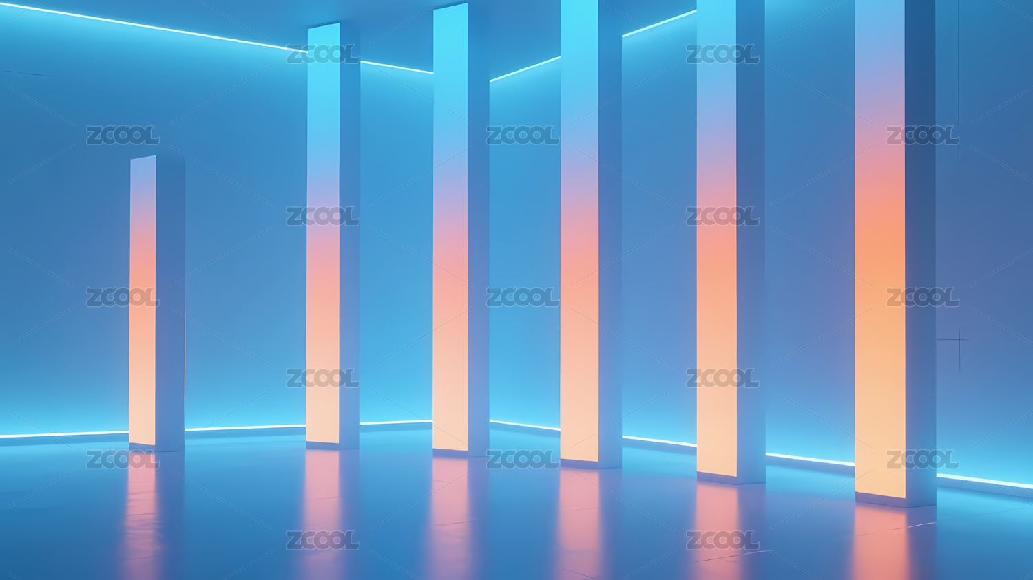 发光柱体空间 抽象光影氛围