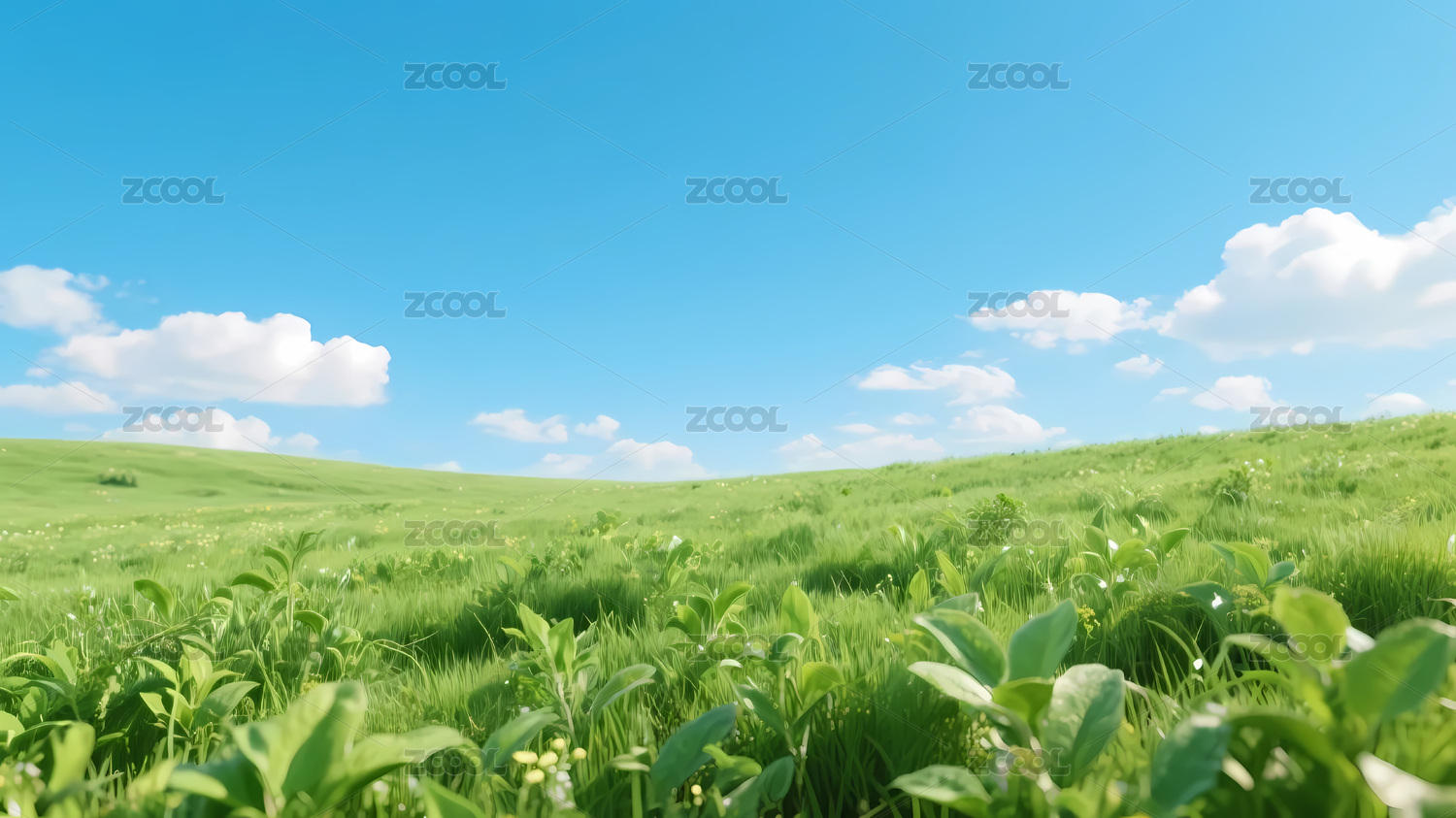 绿色,背景,清澈,自然,蓝天,草地,白云,鲜亮,茂盛,生机