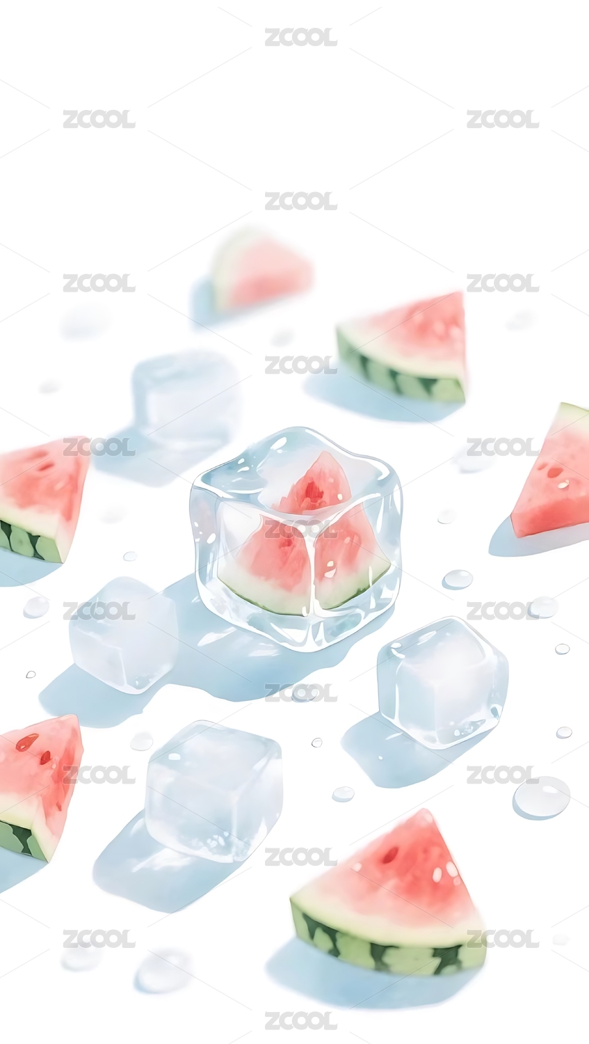 炎热高温夏天水果海报西瓜冰块背景