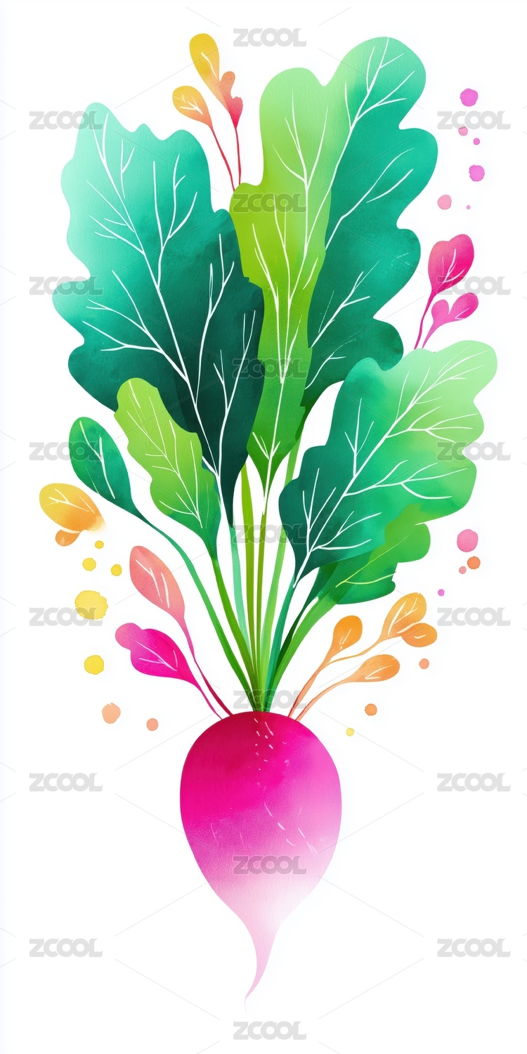 卡通,萝卜,叶子,插画,拟人,水彩,可爱,笑脸,艺术,设计