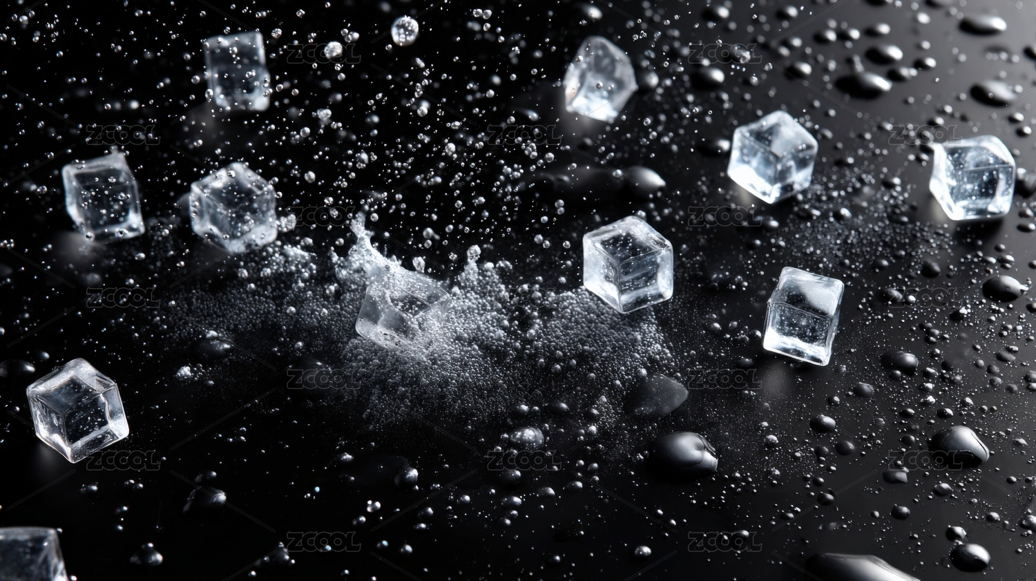 冰块和水滴在黑色背景上