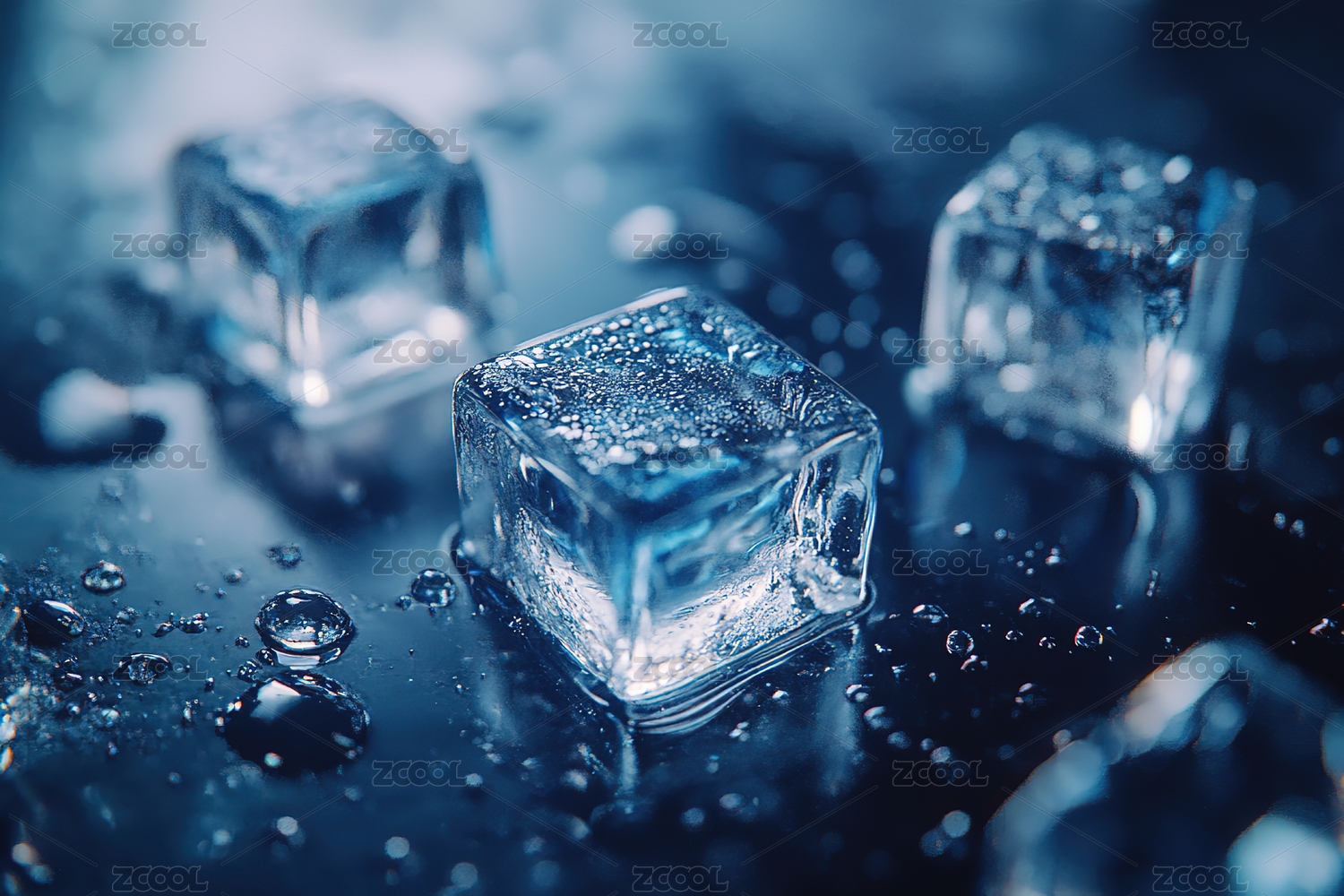 透明冰块蓝色水滴光线