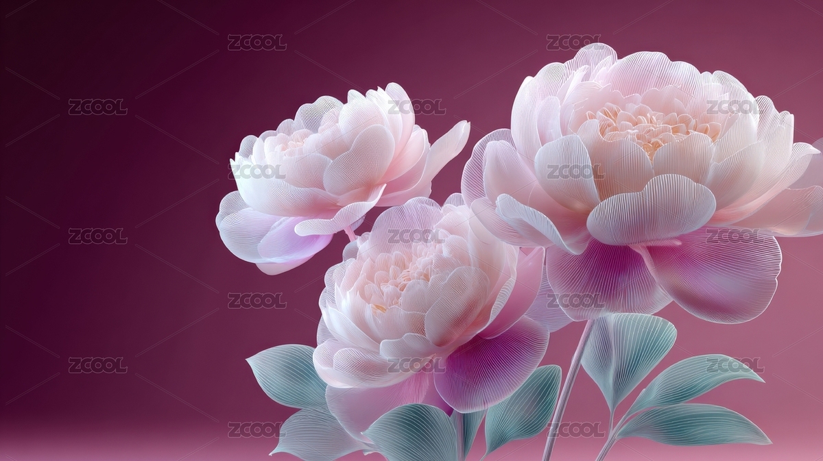 盛开的粉色牡丹花唯美3D插画