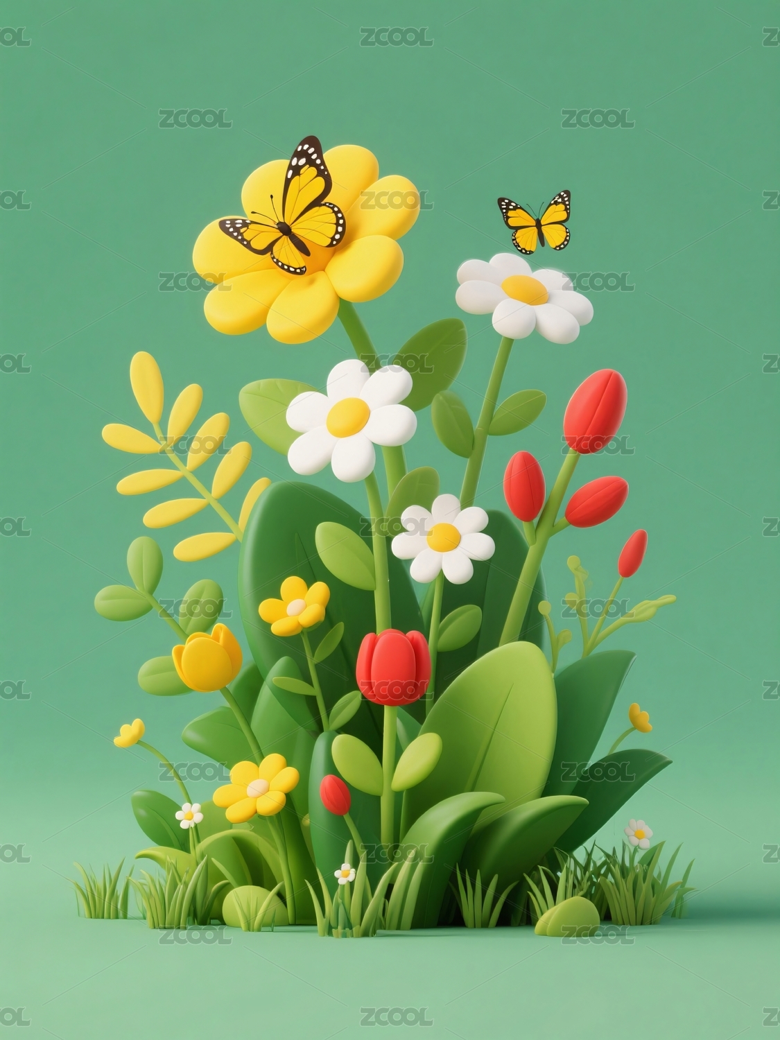 缤纷鲜花蝴蝶簇拥春日烂漫景象