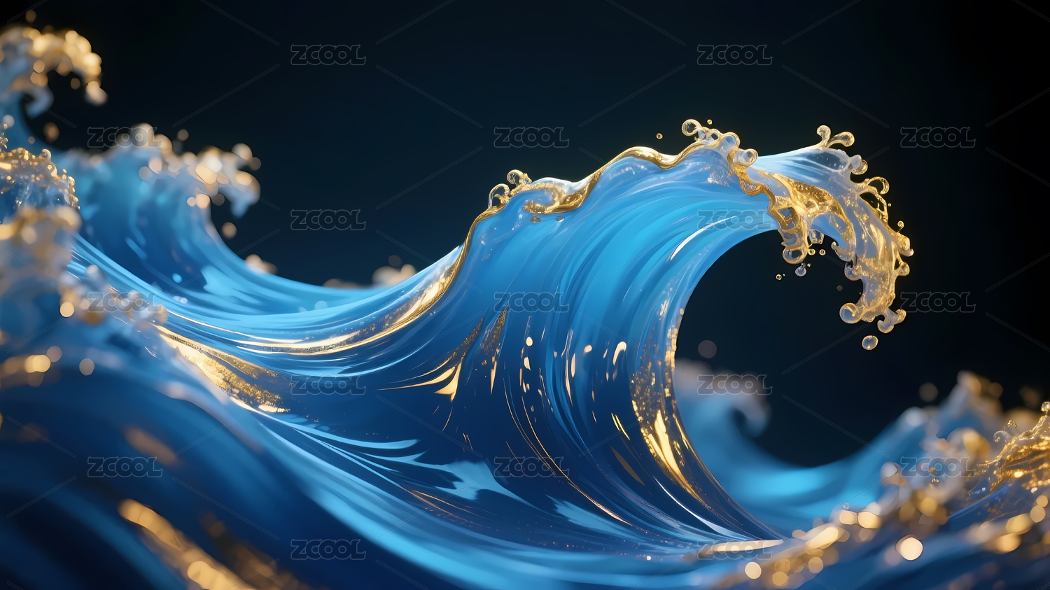 蓝金色海浪与深蓝背景