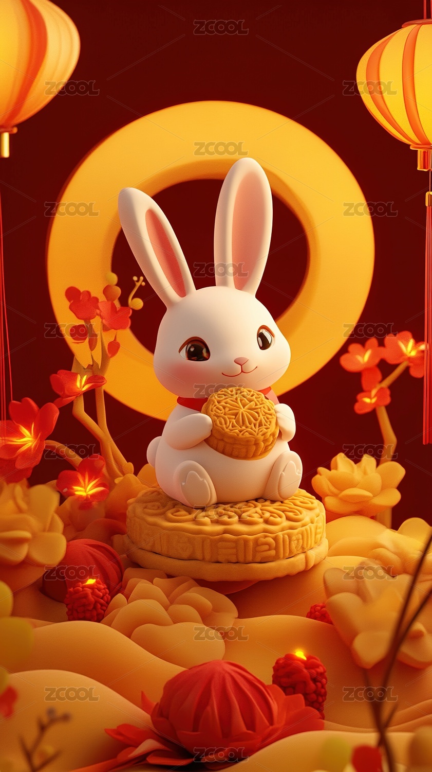 中秋节兔子吃月饼场景