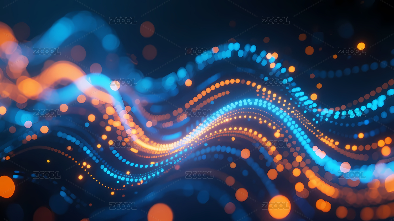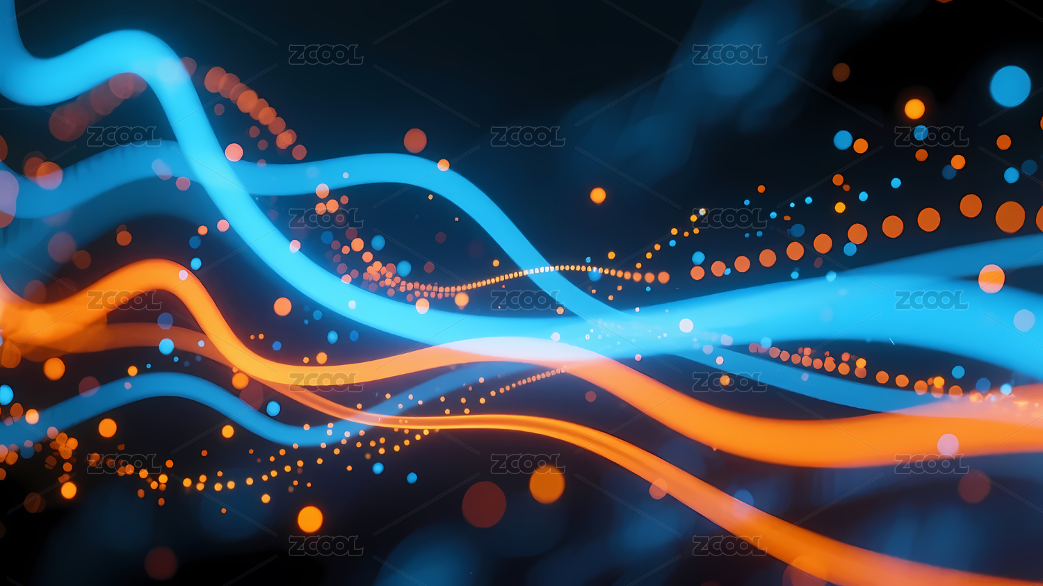 蓝橙光点波浪线条