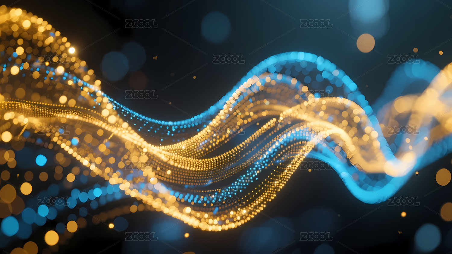 金蓝粒子波浪的梦幻效果