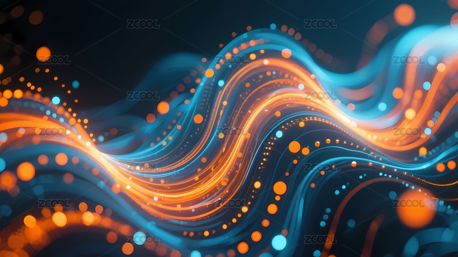 蓝橙色波浪光点线条