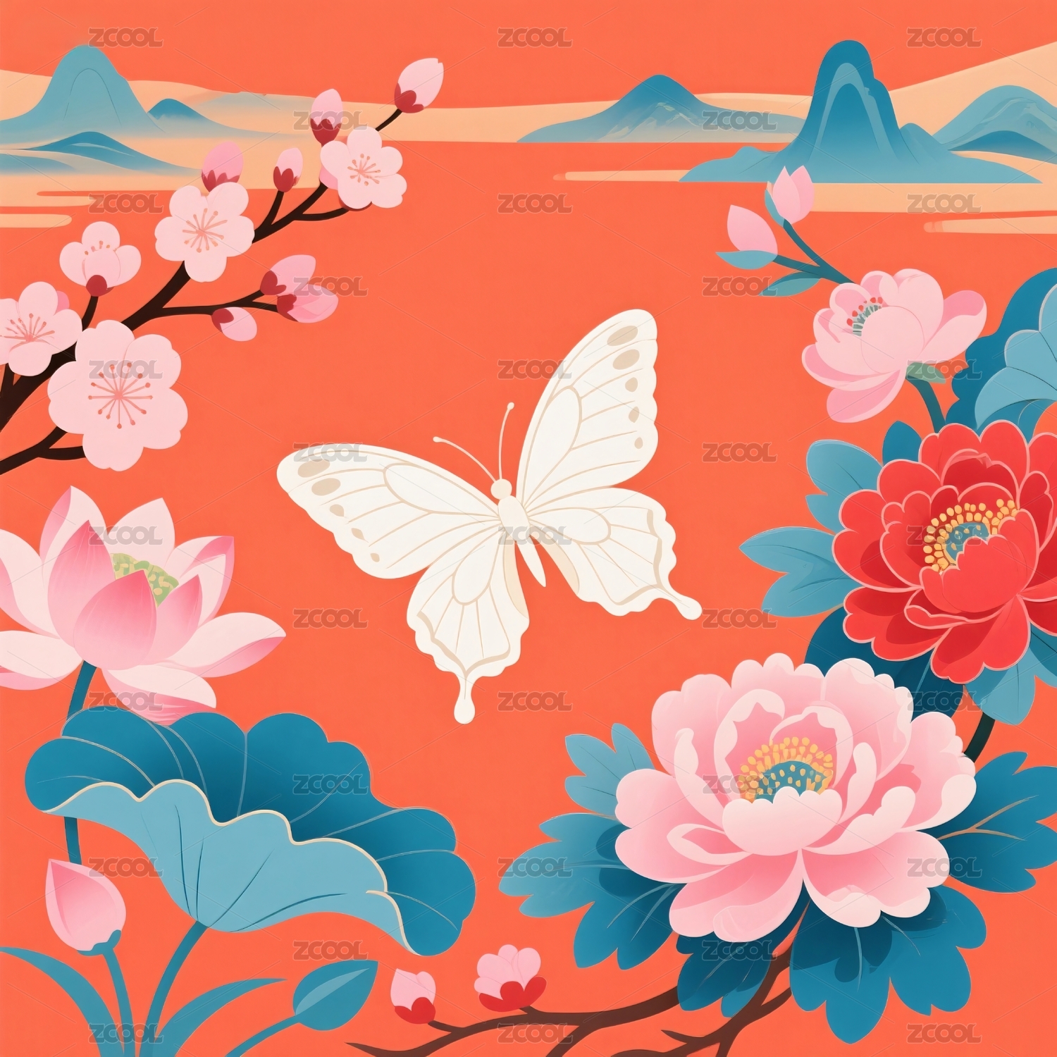 花朵,橙色,粉色,美丽,自然,蝴蝶,牡丹,盛开,莲花,绽放