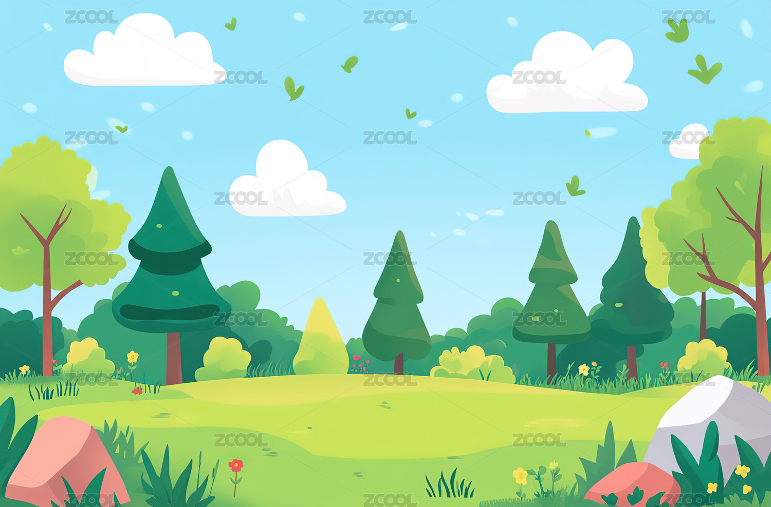 美丽的草地树林场景