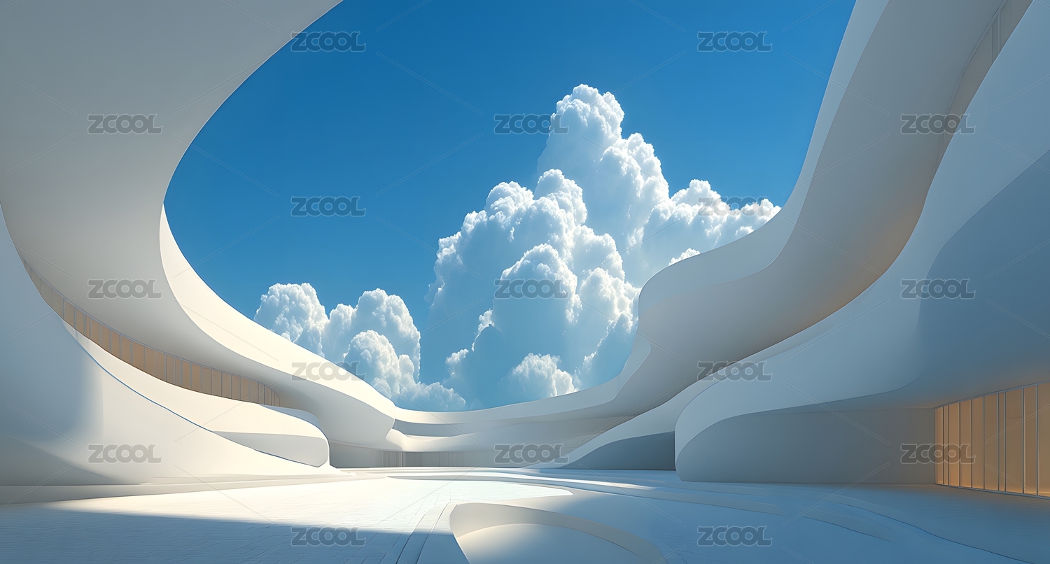 天空云朵下的未来建筑场景