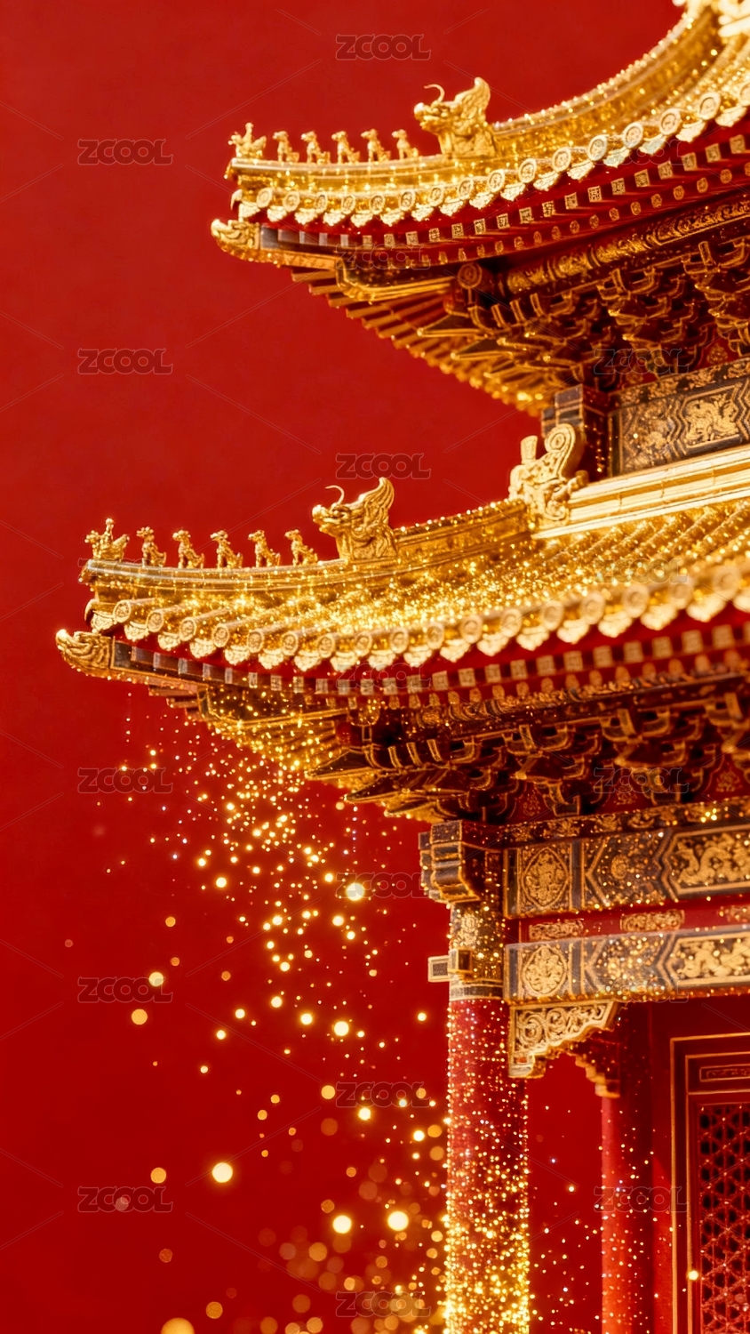 中秋节,中秋,粒子,元素,兔子,月亮,灯笼,屋檐,古建筑,门楼