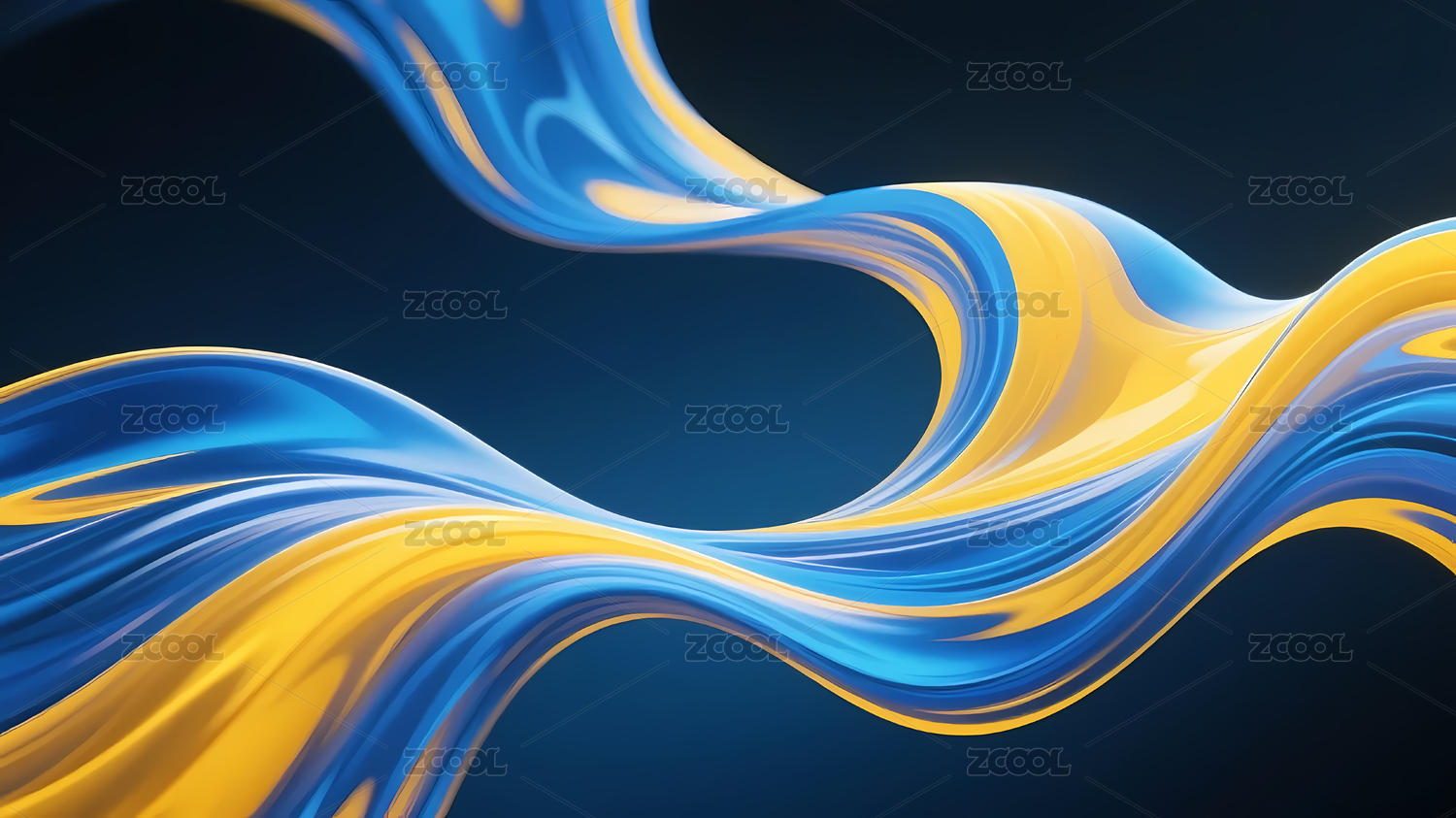 蓝色,背景,波浪,流动,曲线,深色,金色,光泽,光滑,鲜艳