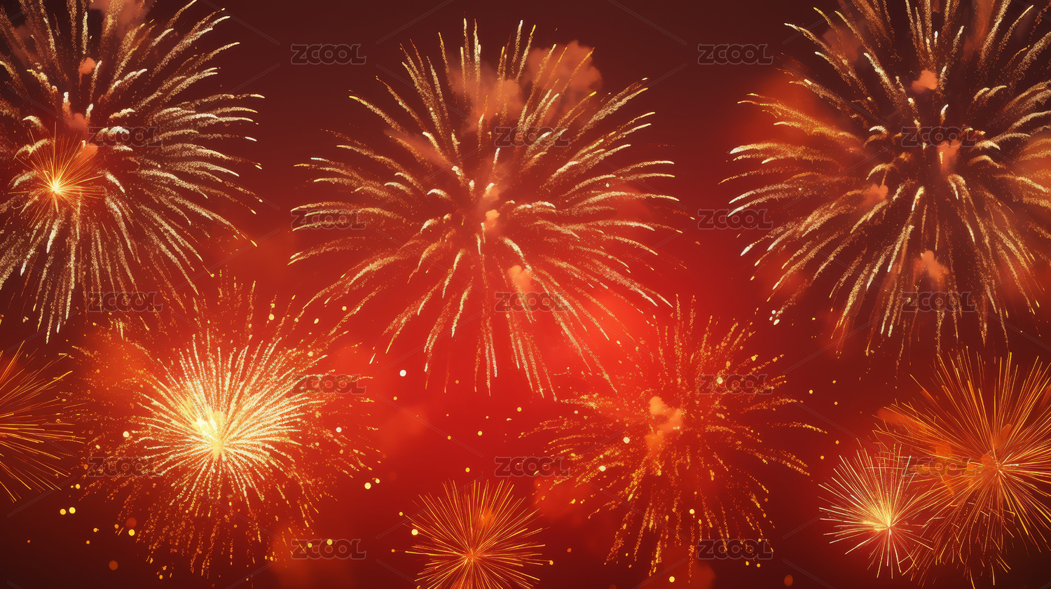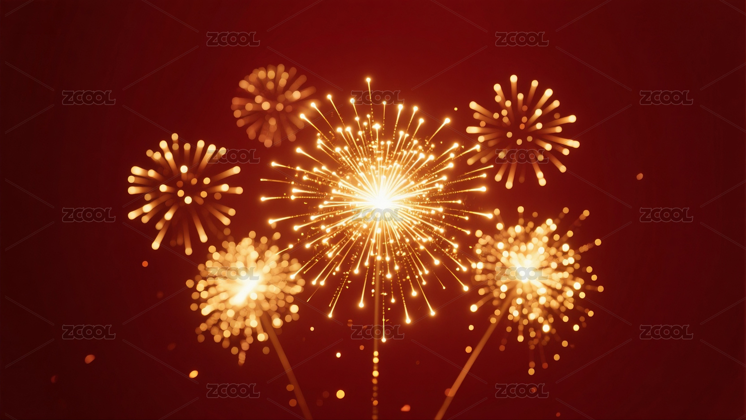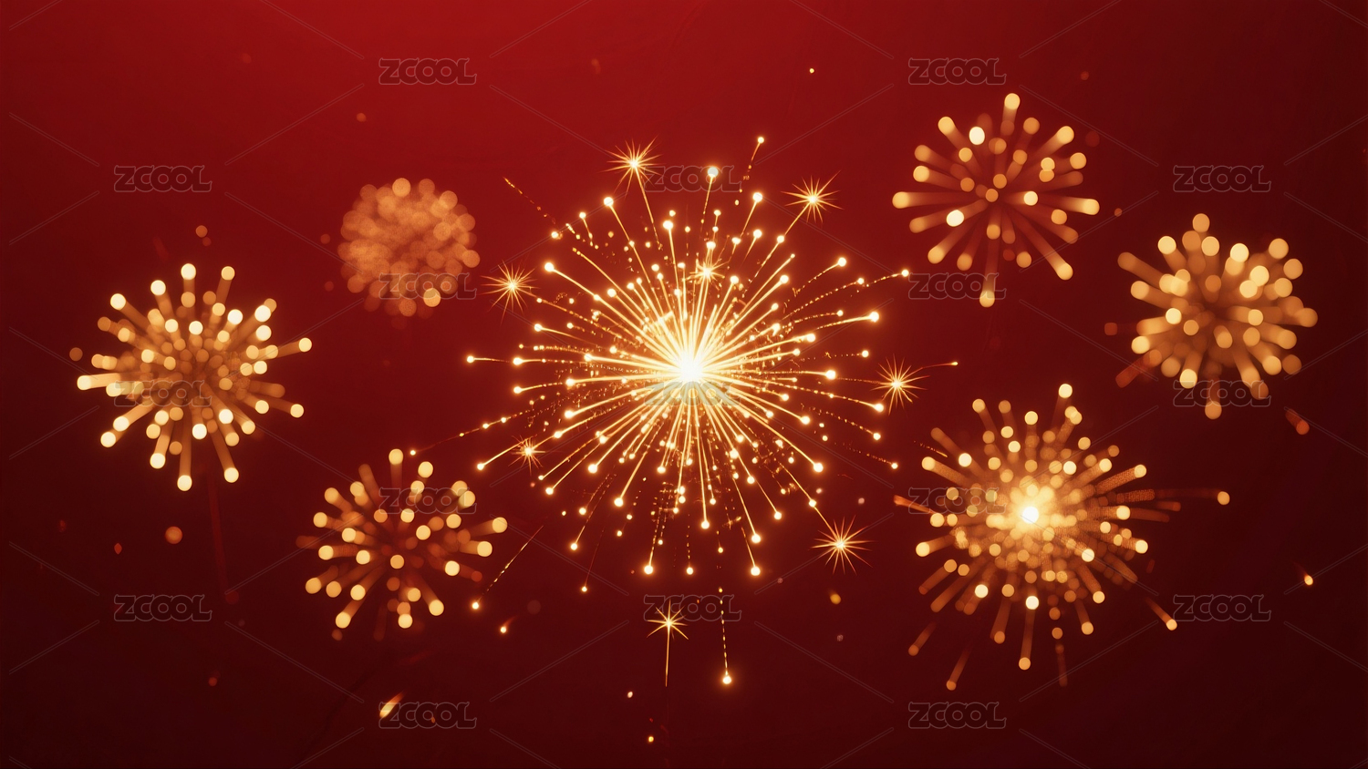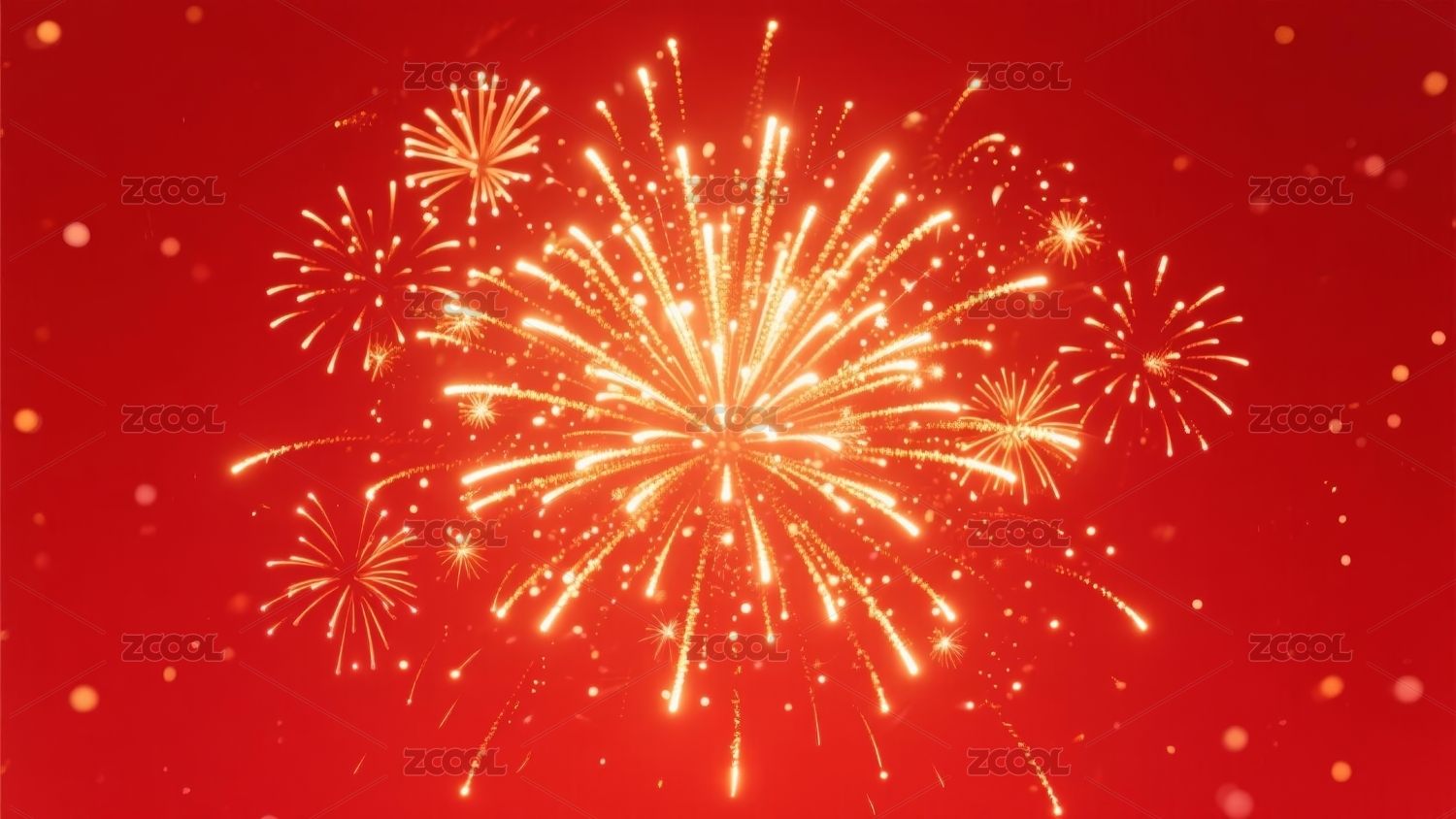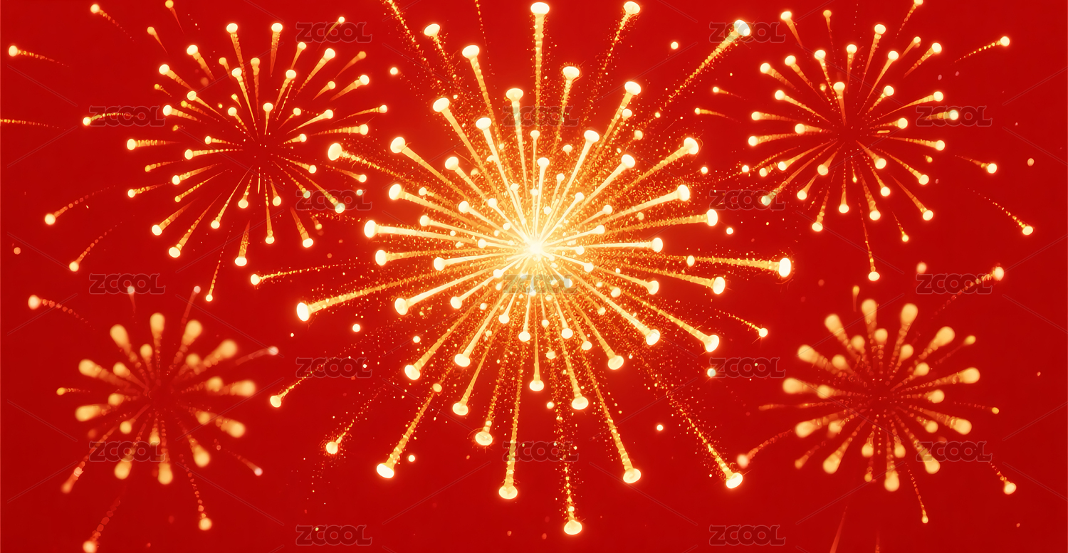 金色烟花绽放红色背景