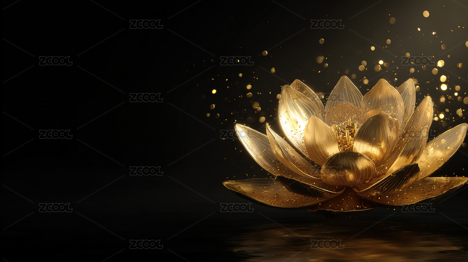 金色,花,花朵,金属,光泽,黑色背景,菊花,牡丹花,荷花,山茶花