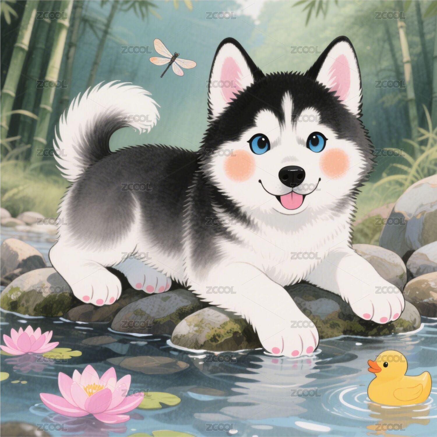 水彩,甜美风格,卡通风格,贴纸,图案,动物,萌宠,插画,宠物,小狗