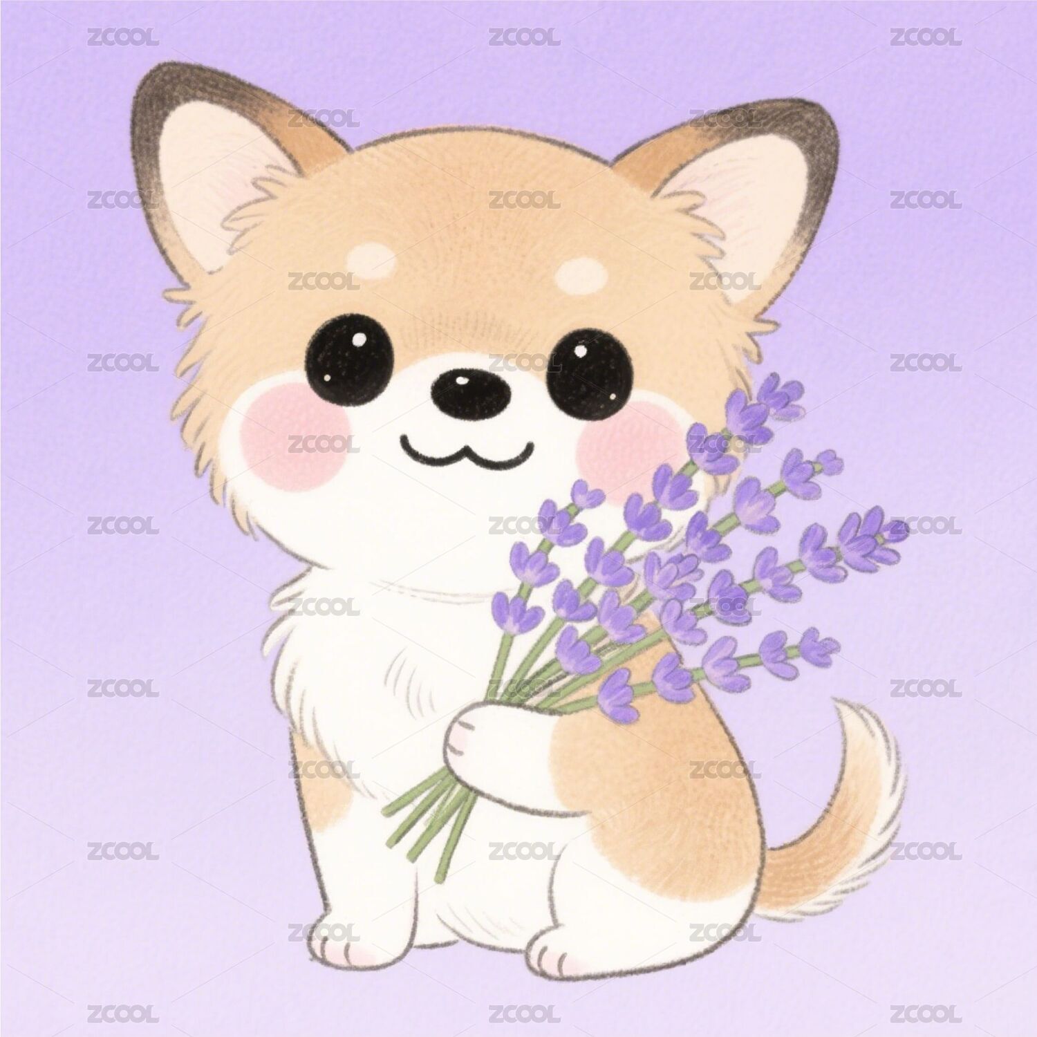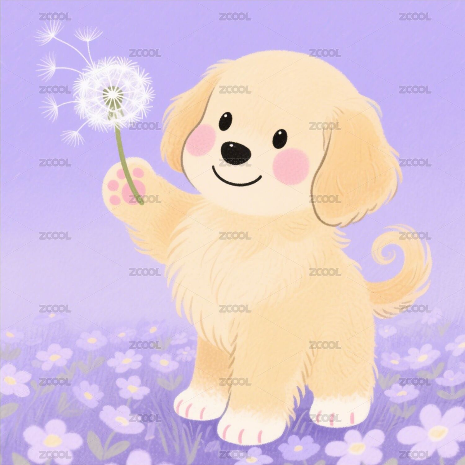 水彩,甜美风格,卡通风格,贴纸,图案,动物,萌宠,插画,宠物,小狗