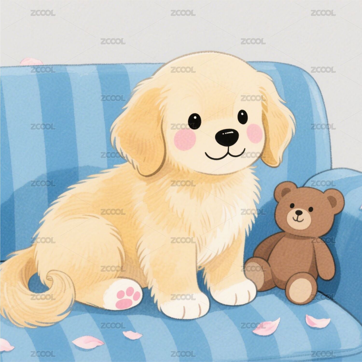 水彩,甜美风格,卡通风格,贴纸,图案,动物,萌宠,插画,宠物,小狗
