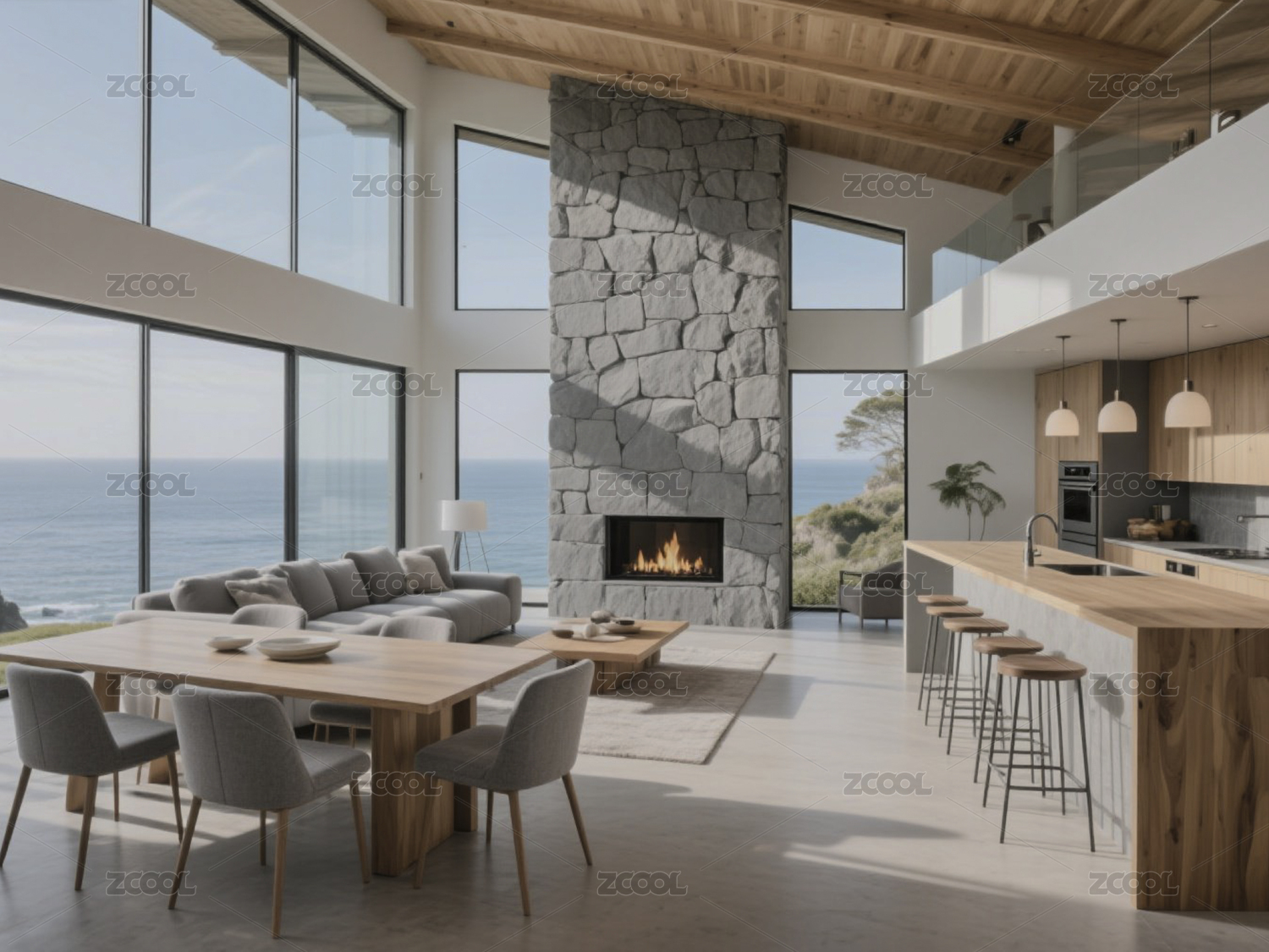 现代,沿海,户外,海景,景观,舒适,简约,当代,海滨,大窗户