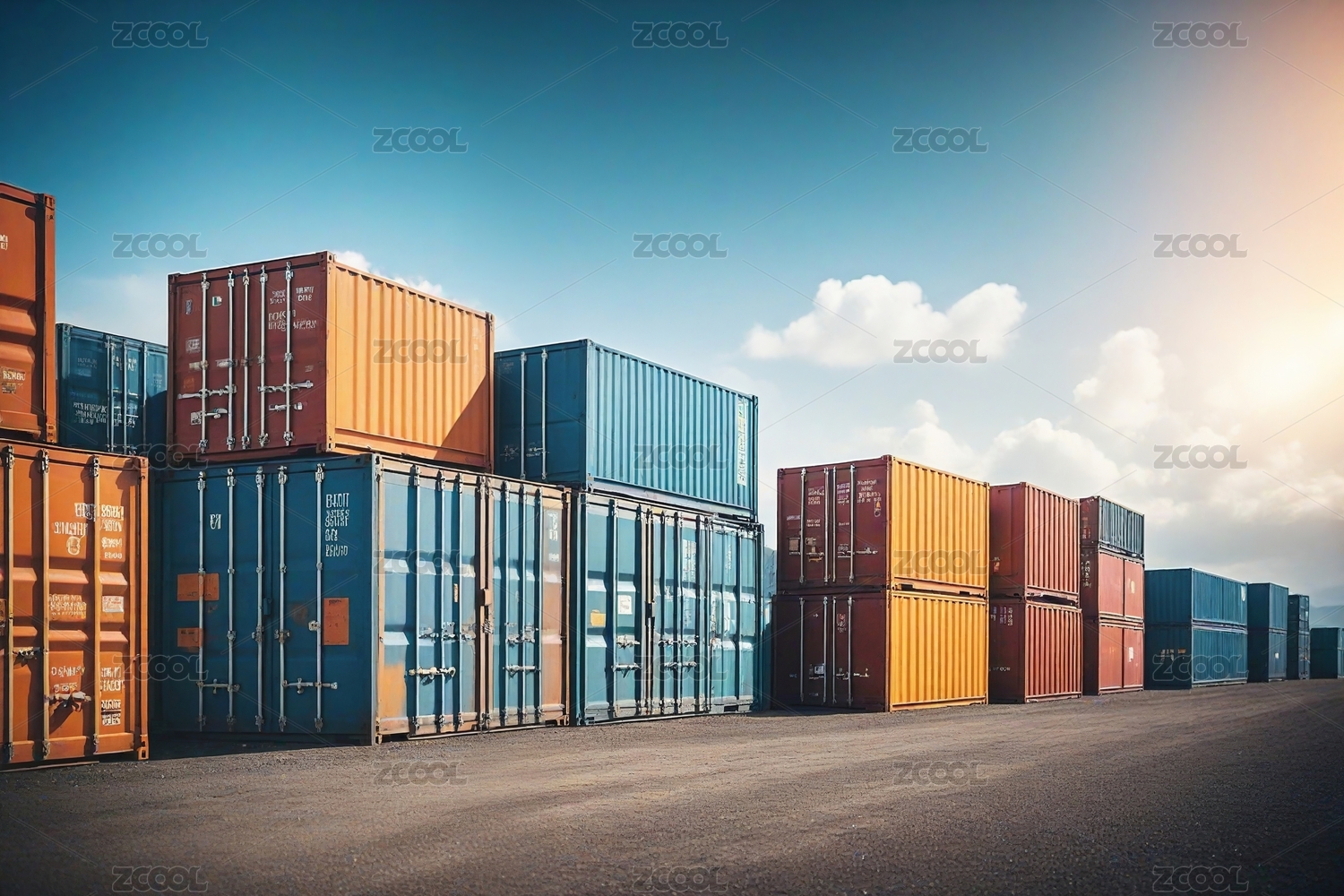 蓝天,白云,道路,阳光,集装箱,码头,运输,货物,堆叠,起重机