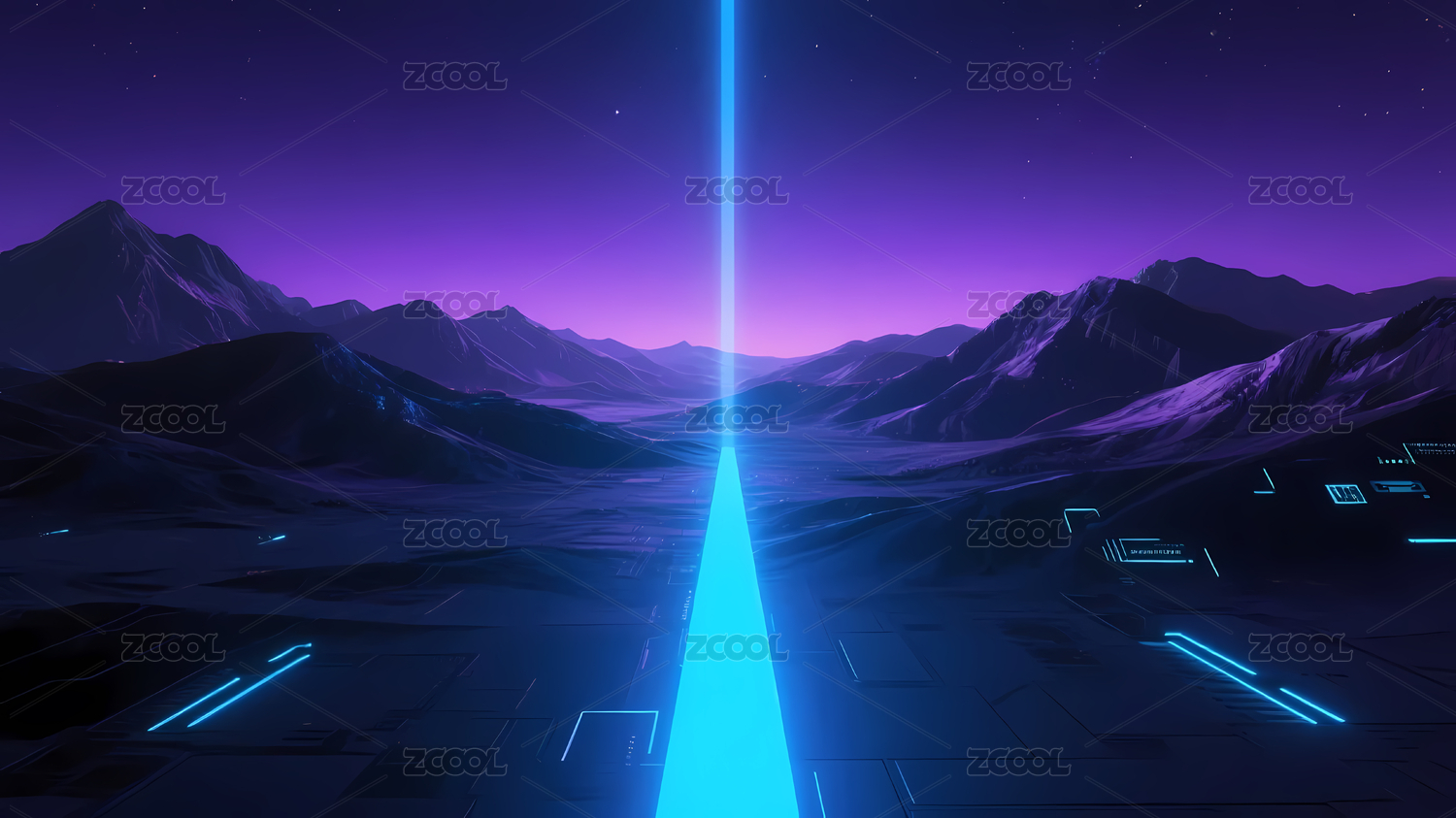 蓝色,效果,线条,紫色,视觉,渐变,地面,山脉,夜空,光柱