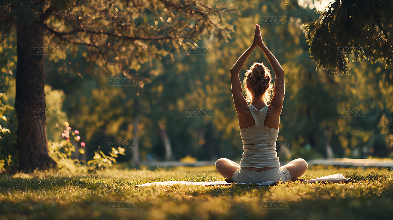 身材苗条的女生在户外做瑜伽热身锻炼运动
