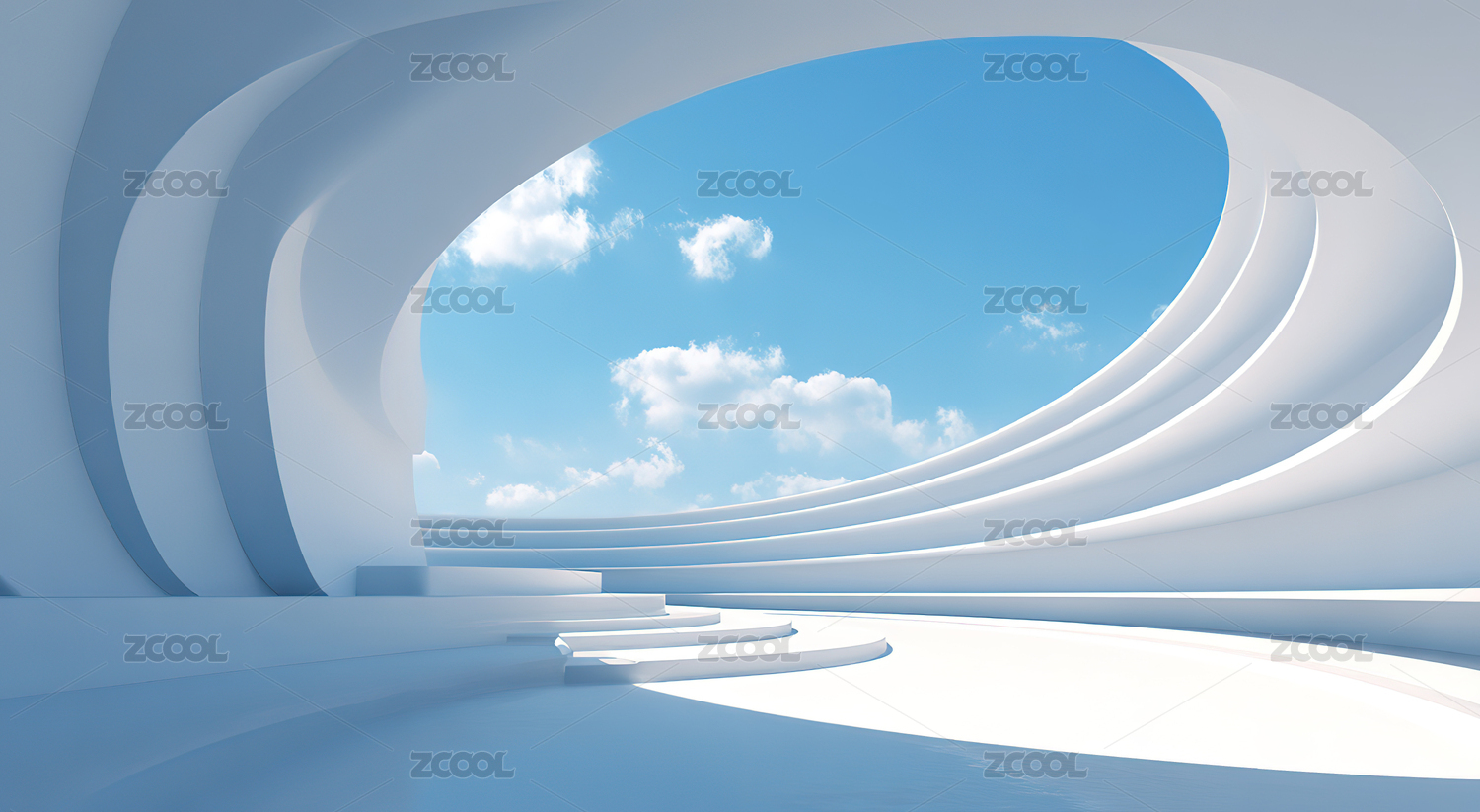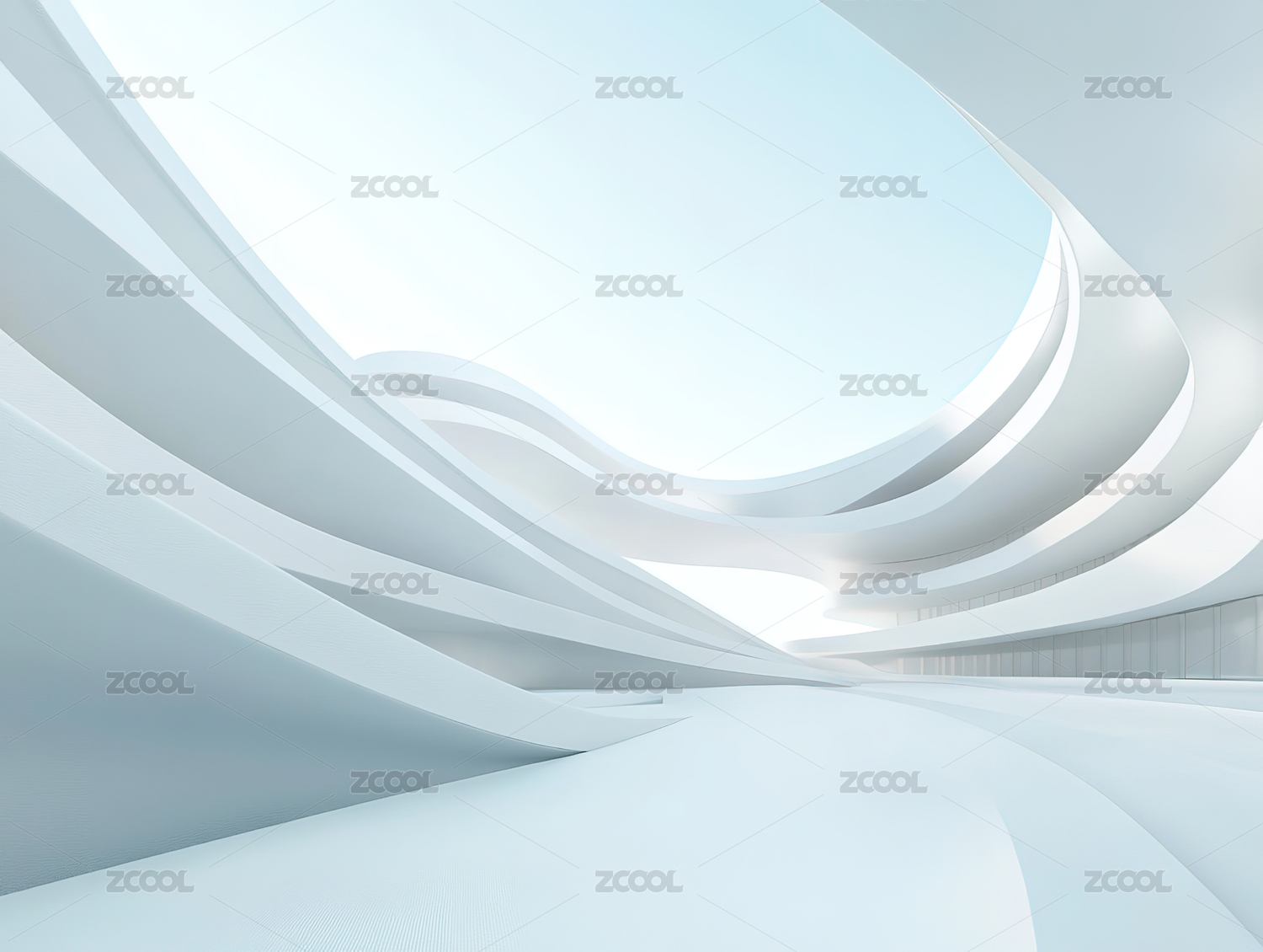 白色灯光流线型极简抽象建筑空间广场地面背