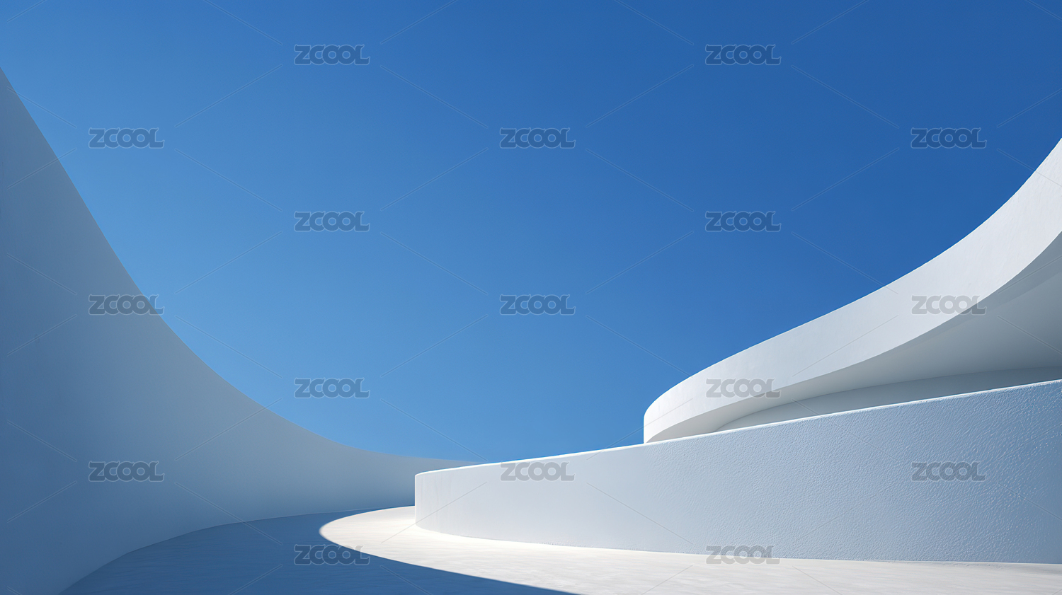 流线型白色建筑与蓝天