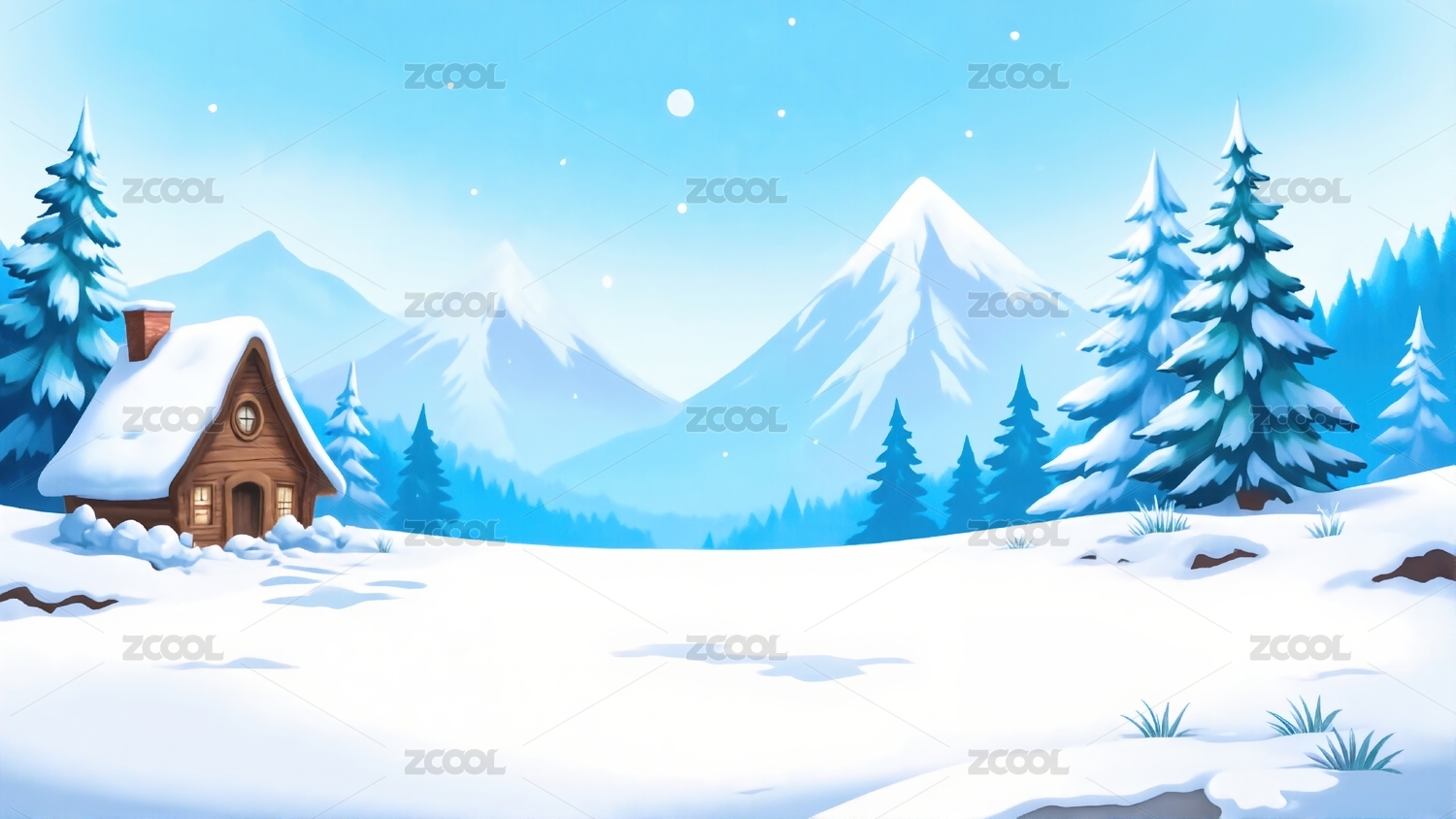 冬季雪山木屋场景