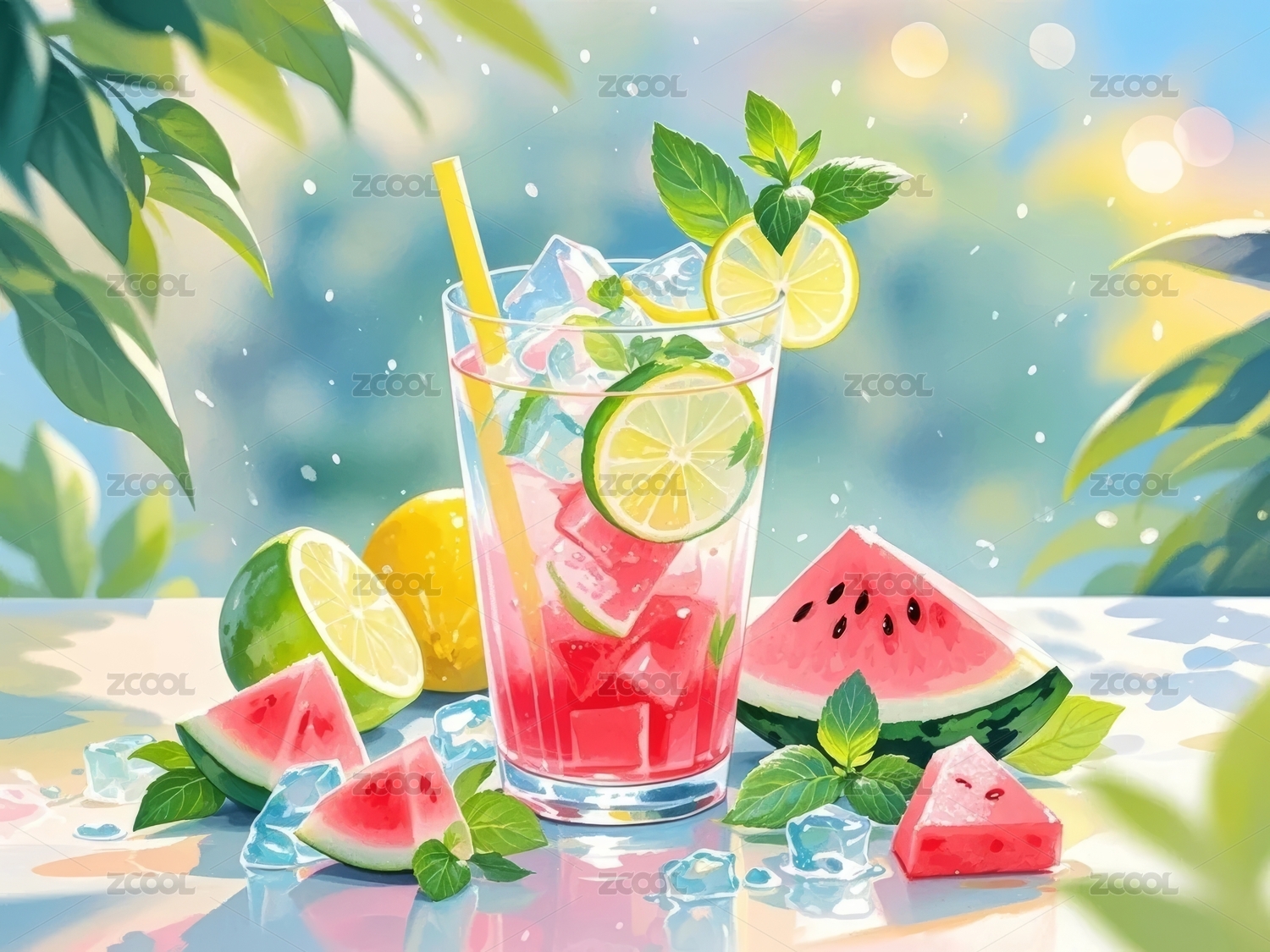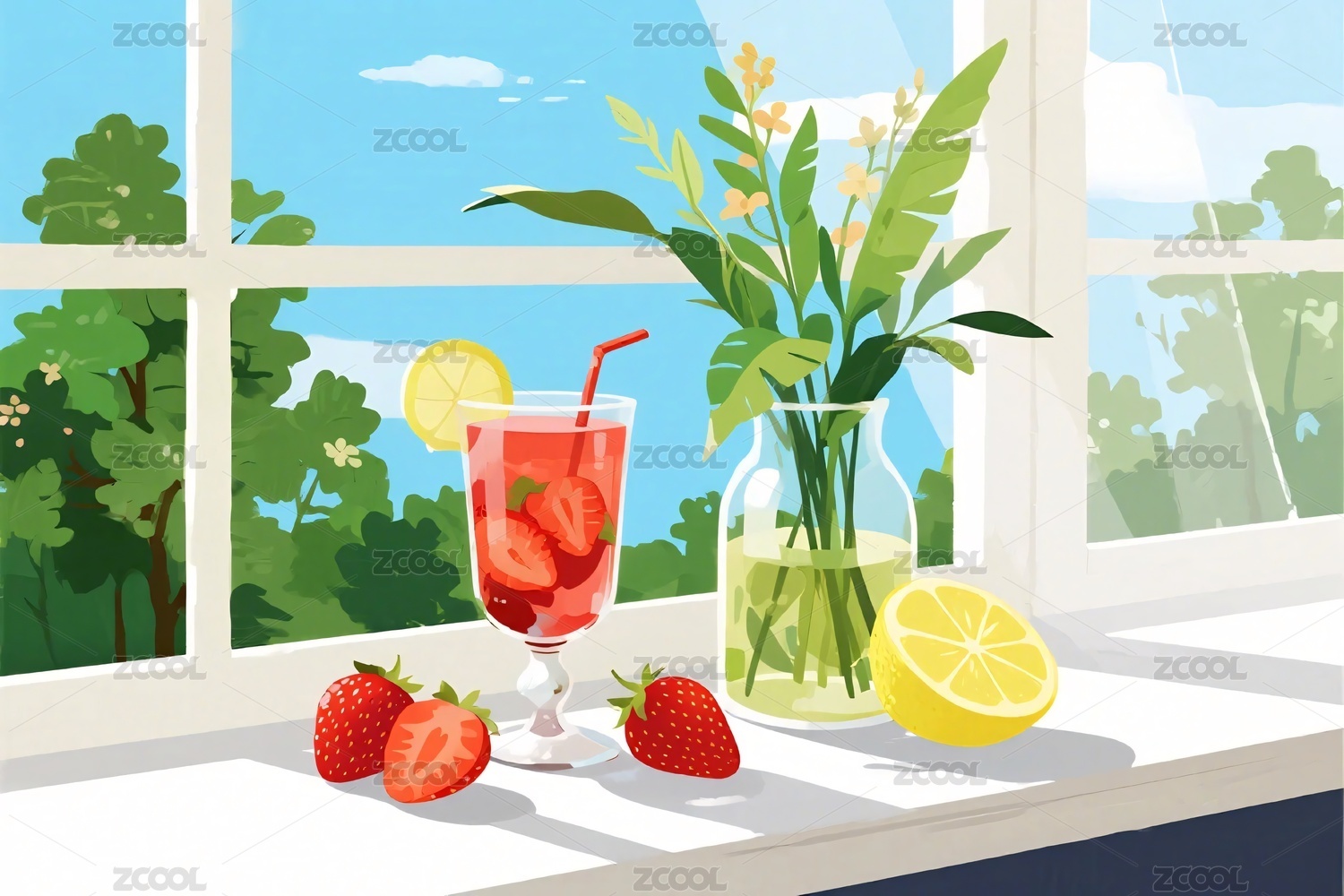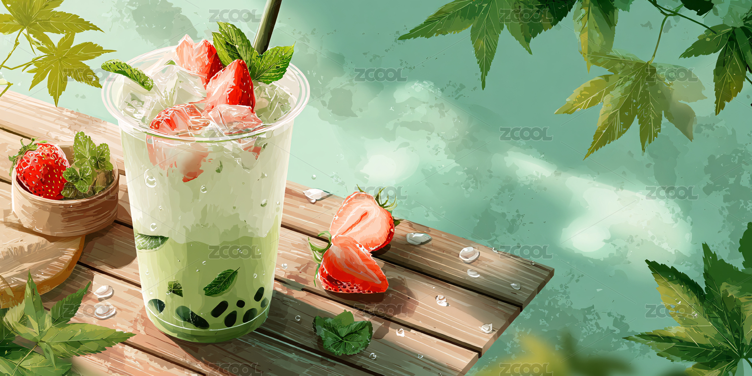 草莓,薄荷,饮品,冷饮,夏日,清新,水果,木桌,阳光,休闲