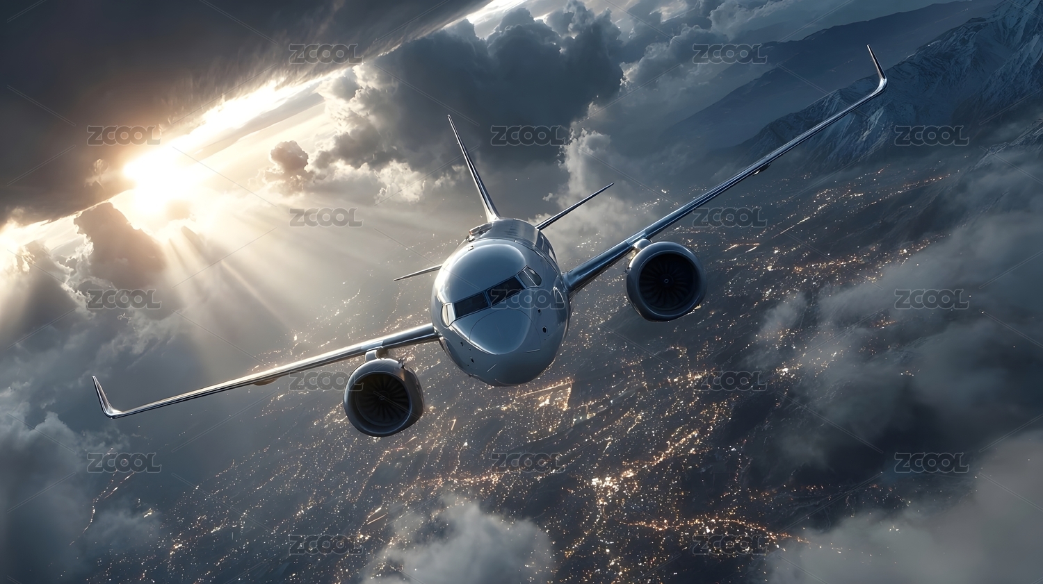 飞机降落城市夜景