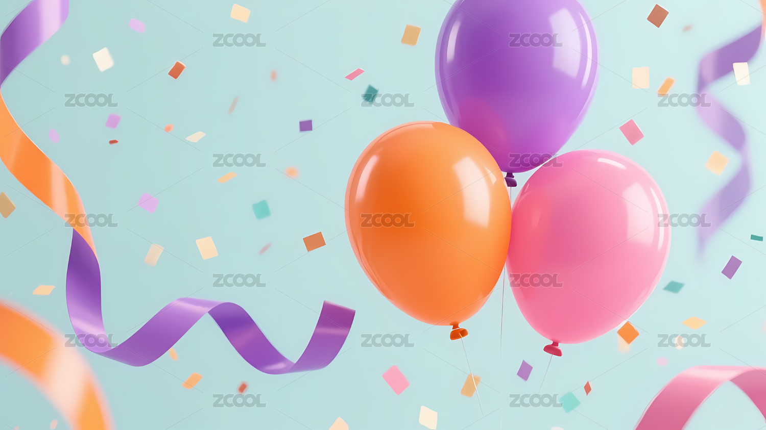 彩色气球与五彩纸屑